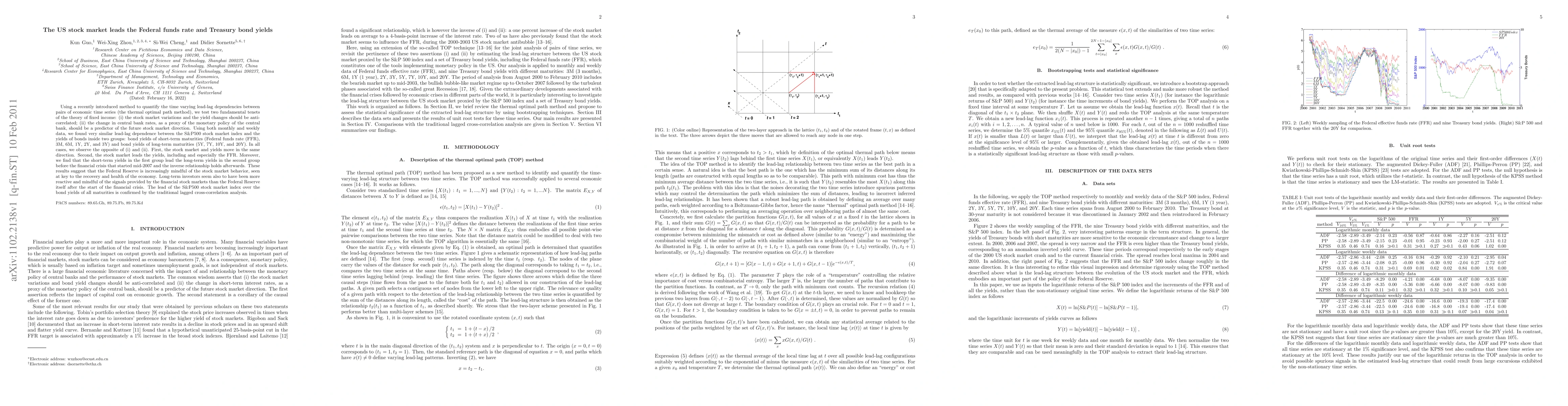 This study uses the thermal optimal path method to analyze the lead-lag relationships between the S&P500 stock market index and Treasury bond yields, finding that the stock market leads bond yields, contrary to traditional fixed income theory. The Federal Reserve's rate changes predict stock market direction less effectively than previously thought.