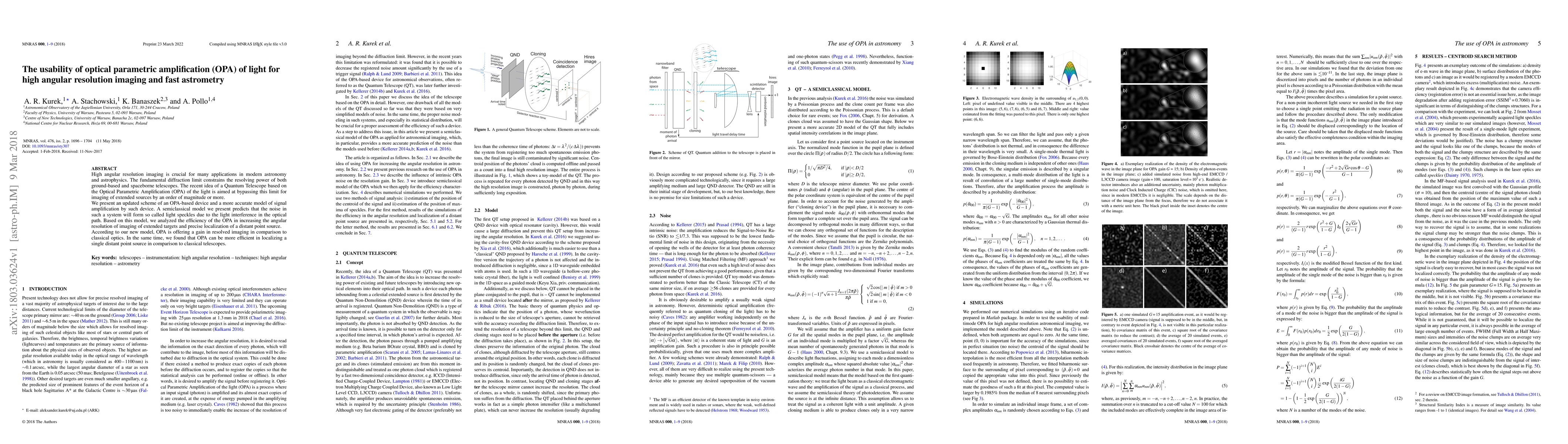 This paper explores the potential of optical parametric amplification (OPA) to surpass the diffraction limit in high-angular-resolution imaging and astrometry. The authors propose an updated OPA-based device model and find that OPA can significantly enhance the imaging of extended sources and the precise localization of distant point sources compared to classical optics.