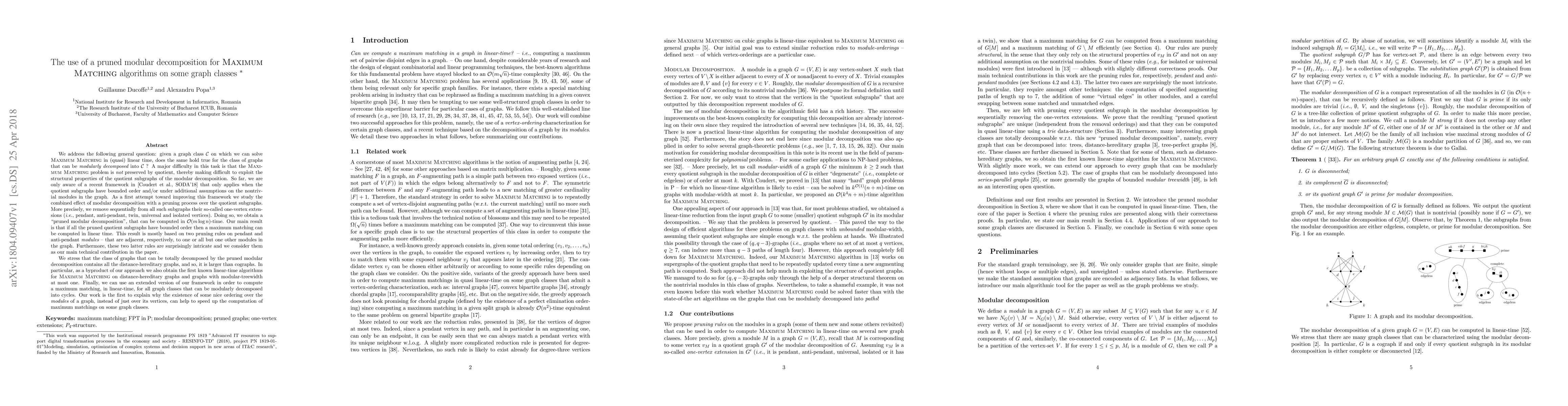 We address the following general question: given a graph class C on which we can solve Maximum Matching in (quasi) linear time, does the same hold true for the class of graphs that can be modularly decomposed into C ? A major difficulty in this task is that the Maximum Matching problem is not preserved by quotient, thereby making difficult to exploit the structural properties of the quotient subgraphs of the modular decomposition. So far, we are only aware of a recent framework in [Coudert et al., SODA'18] that only applies when the quotient subgraphs have bounded order and/or under additional assumptions on the nontriv-ial modules in the graph. As a first attempt toward improving this framework we study the combined effect of modular decomposition with a pruning process over the quotient subgraphs. More precisely, we remove sequentially from all such subgraphs their so-called one-vertex extensions (i.e., pendant, anti-pendant, twin, universal and isolated vertices). Doing so, we obtain a "pruned modular decomposition", that can be computed in O(m log n)-time. Our main result is that if all the pruned quotient subgraphs have bounded order then a maximum matching can be computed in linear time. This result is mostly based on two pruning rules on pendant and anti-pendant modules -- that are adjacent, respectively, to one or all but one other modules in the graph. Furthermore, these two latter rules are surprisingly intricate and we consider them as our main technical contribution in the paper. We stress that the class of graphs that can be totally decomposed by the pruned modular decomposition contains all the distance-hereditary graphs, and so, it is larger than cographs. In particular, as a byproduct of our approach we also obtain the first known linear-time algorithms for Maximum Matching on distance-hereditary graphs and graphs with modular-treewidth at most one. Finally, we can use an extended version of our framework in order to compute a maximum matching, in linear-time, for all graph classes that can be modularly decomposed into cycles. Our work is the first to explain why the existence of some nice ordering over the modules of a graph, instead of just over its vertices, can help to speed up the computation of maximum matchings on some graph classes.