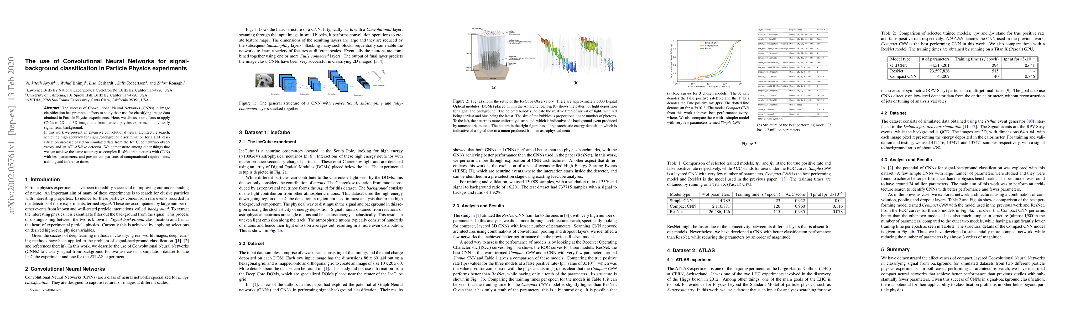 This paper explores the application of Convolutional Neural Networks (CNNs) for classifying signal versus background in Particle Physics experiments using 2D and 3D image data. The study demonstrates high accuracy in signal/background discrimination using a CNN architecture search, achieving comparable results to ResNet with fewer parameters, and provides insights into computational efficiency.