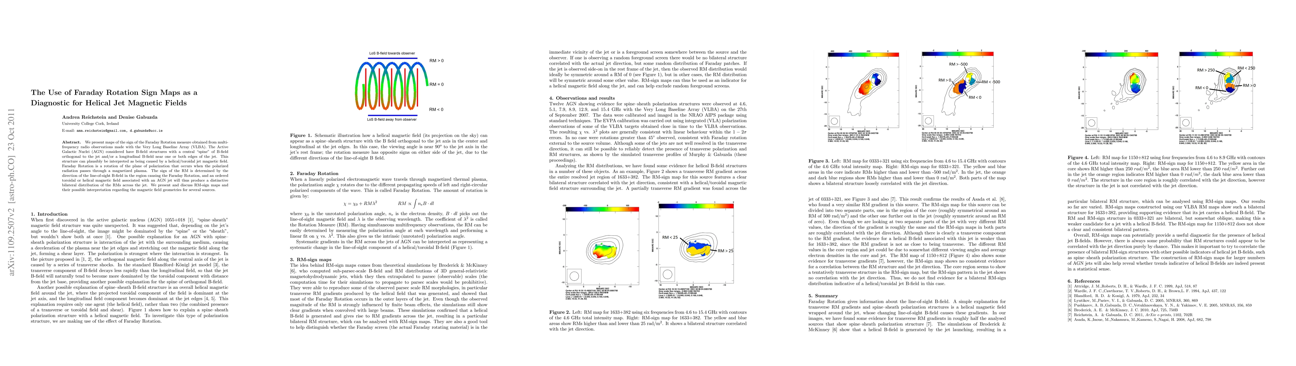 This paper presents Faraday Rotation measure sign maps from VLBA observations, revealing helical/toroidal magnetic field structures in AGN jets, inferred from the distinctive distribution of positive and negative RMs. These findings provide diagnostic insights into the magnetic field geometries of Active Galactic Nuclei.
