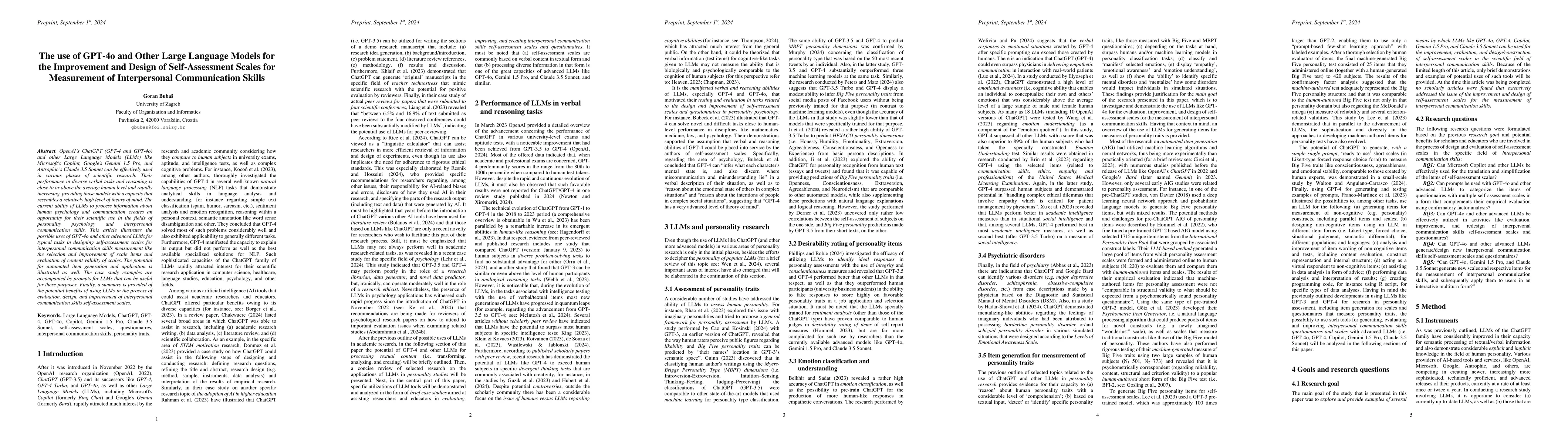 The paper explores how advanced Large Language Models (LLMs) like GPT-4o can aid in designing self-assessment scales for measuring interpersonal communication skills, offering benefits in item selection, content validity evaluation, and automated item generation. The study highlights the increasing capabilities of LLMs in understanding human psychology, making them valuable tools in scientific research and psychological assessment.