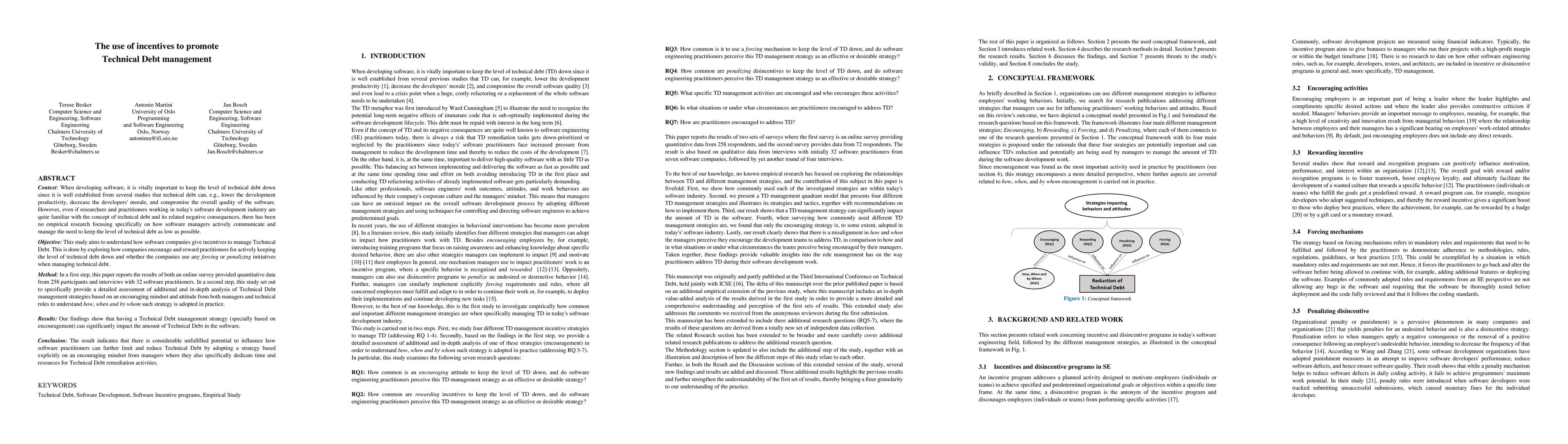 Researchers investigated how software managers promote technical debt management using incentives. They found that such incentives can improve developers' morale and overall software quality.