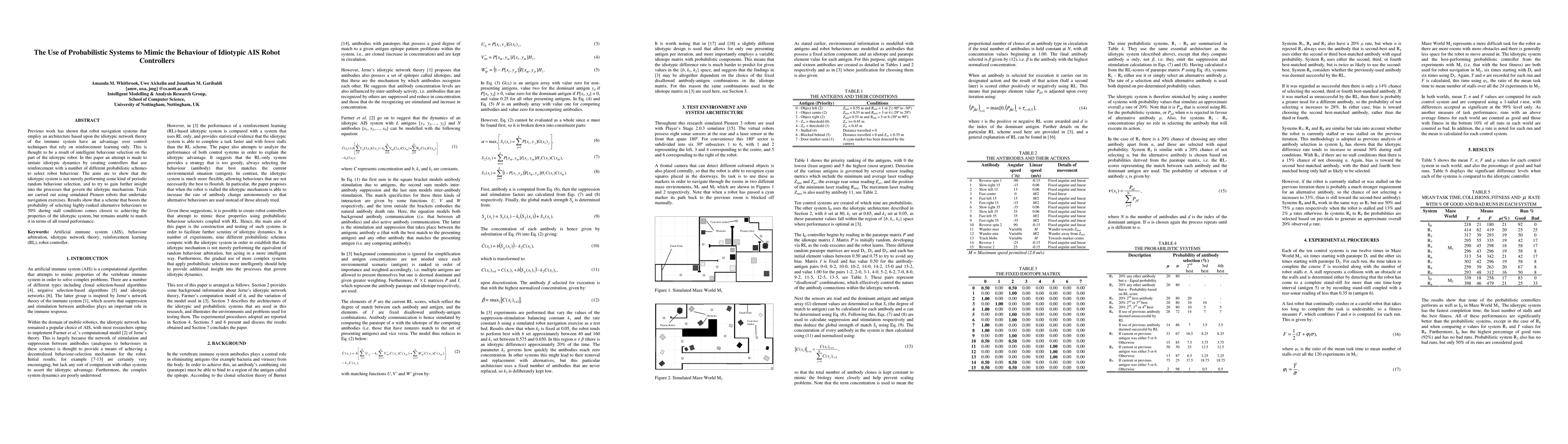 This paper explores probabilistic systems to mimic the behaviour of idiotypic AIS robot controllers, demonstrating that reinforcement learning with probabilistic schemes can partially replicate idiotypic dynamics, though not fully matching the performance of idiotypic systems.