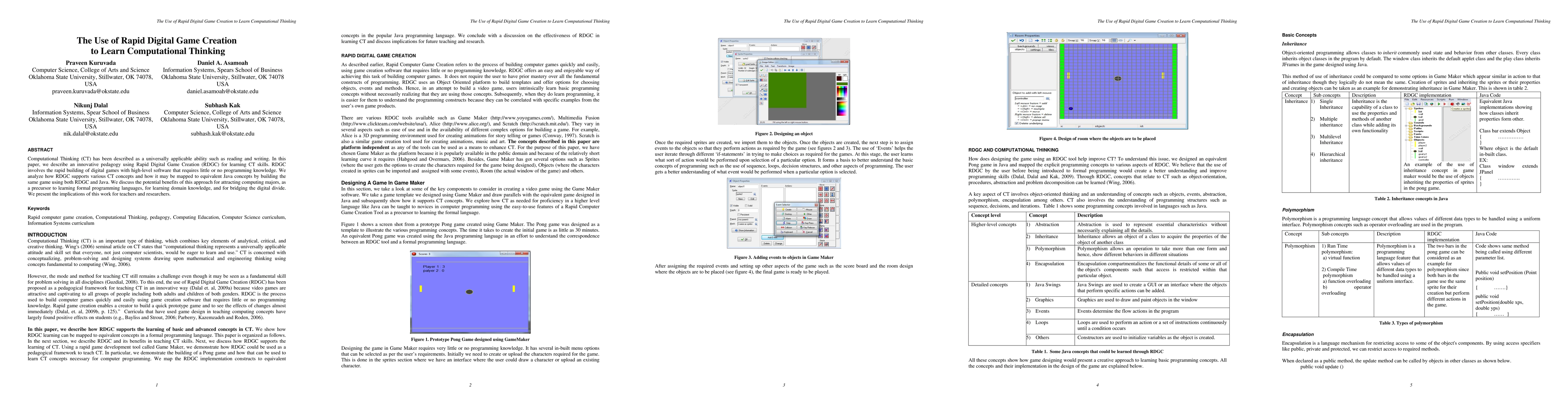 This paper explores an innovative pedagogy using Rapid Digital Game Creation (RDGC) to teach Computational Thinking (CT) skills, demonstrating how RDGC supports various CT concepts and mapping them to Java concepts. The study highlights RDGC's potential benefits in attracting computing majors, fostering domain knowledge, and bridging the digital divide.