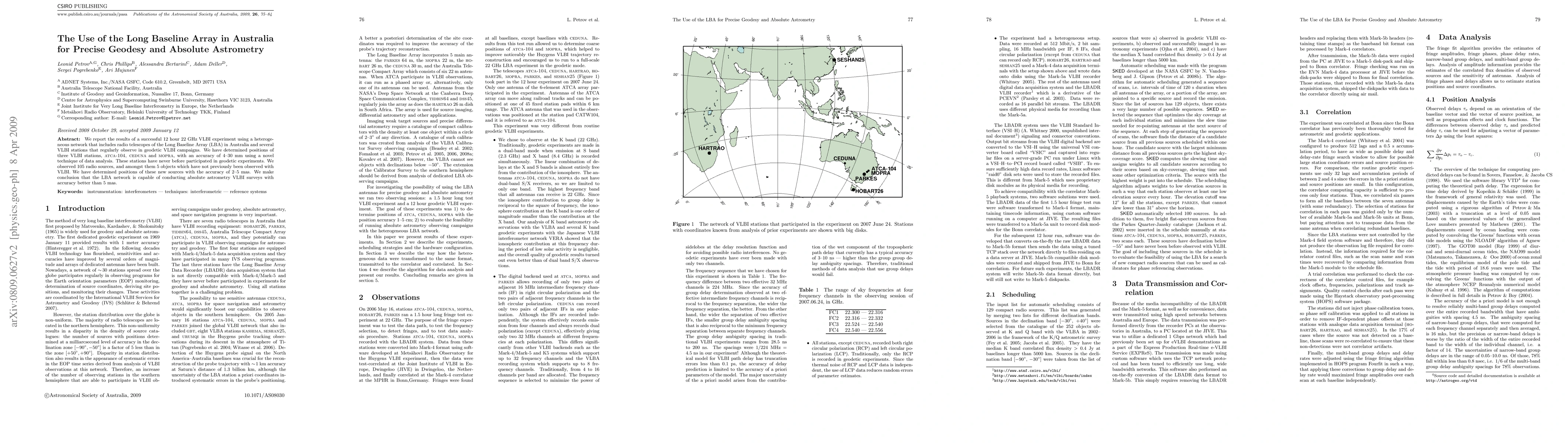 We report the results of a successful 12 hour 22 GHz VLBI experiment using a heterogeneous network that includes radio telescopes of the Long Baseline Array (LBA) in Australia and several VLBI stations that regularly observe in geodetic VLBI campaigns. We have determined positions of three VLBI stations, ATCA-104, CEDUNA and MOPRA, with an accuracy of 4-30mm using a novel technique of data analysis. These stations have never before participated in geodetic experiments. We observed 105 radio sources, and amongst them 5 objects which have not previously been observed with VLBI. We have determined positions of these new sources with the accuracy of 2-5 mas. We make conclusion that the LBA network is capable of conducting absolute astrometry VLBI surveys with accuracy better than 5 mas.
