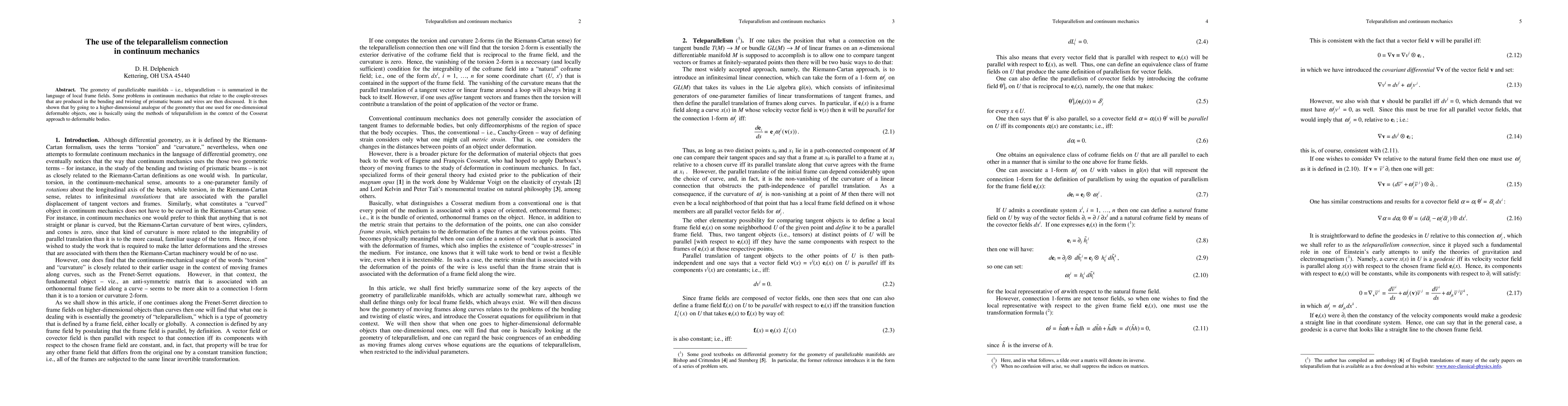The geometry of parallelizable manifolds (i.e., teleparallelism) is summarized in the language of local frame fields. Some problems in continuum mechanics that relate to the couple-stresses that are produced in the bending and twisting of prismatic beams and wires are then discussed. It is then shown that by going to a higher-dimensional analogue of the geometry that one used for one-dimensional deformable objects, one is basically using the methods of teleparallelism in the context of the Cosserat approach to deformable bodies.