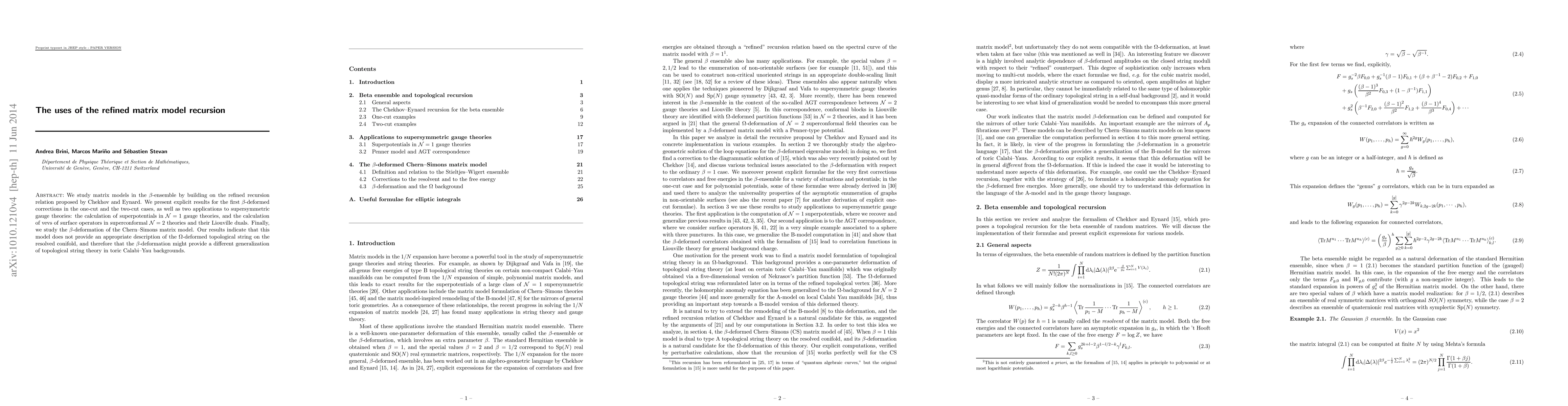 We study matrix models in the beta ensemble by building on the refined recursion relation proposed by Chekhov and Eynard. We present explicit results for the first beta-deformed corrections in the one-cut and the two-cut cases, as well as two applications to supersymmetric gauge theories: the calculation of superpotentials in N=1 gauge theories, and the calculation of vevs of surface operators in superconformal N=2 theories and their Liouville duals. Finally, we study the beta deformation of the Chern-Simons matrix model. Our results indicate that this model does not provide an appropriate description of the Omega-deformed topological string on the resolved conifold, and therefore that the beta-deformation might provide a different generalization of topological string theory in toric Calabi-Yau backgrounds.