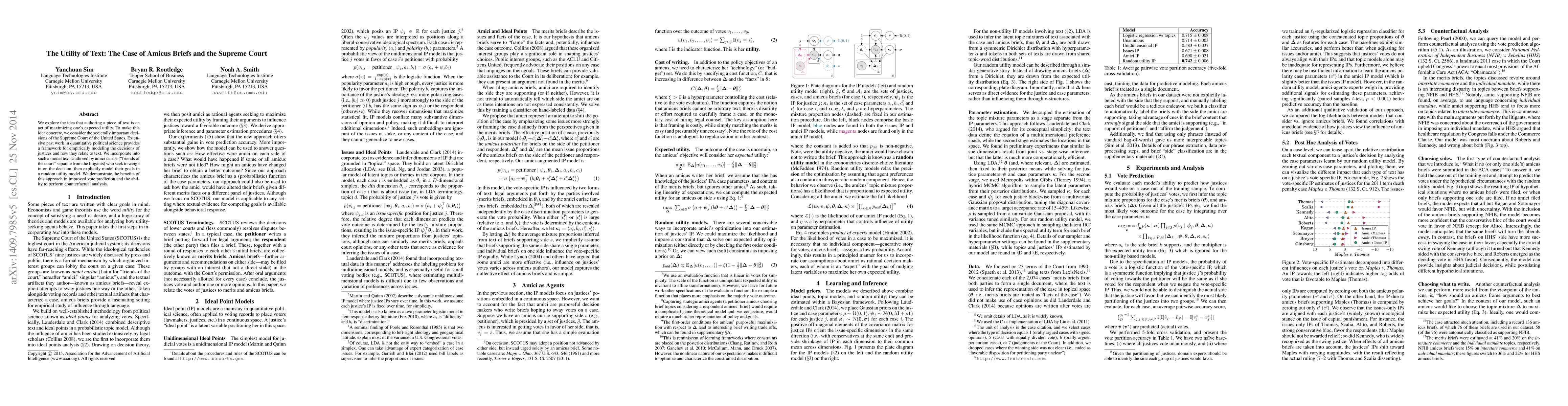 We explore the idea that authoring a piece of text is an act of maximizing one's expected utility. To make this idea concrete, we consider the societally important decisions of the Supreme Court of the United States. Extensive past work in quantitative political science provides a framework for empirically modeling the decisions of justices and how they relate to text. We incorporate into such a model texts authored by amici curiae ("friends of the court" separate from the litigants) who seek to weigh in on the decision, then explicitly model their goals in a random utility model. We demonstrate the benefits of this approach in improved vote prediction and the ability to perform counterfactual analysis.