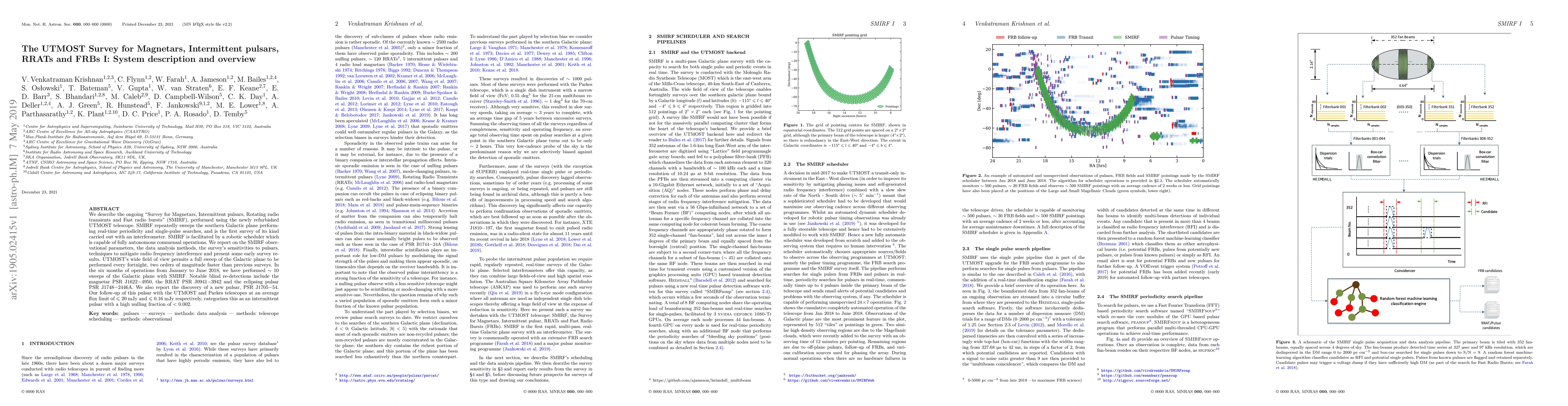 We describe the ongoing `Survey for Magnetars, Intermittent pulsars, Rotating radio transients and Fast radio bursts' (SMIRF), performed using the newly refurbished UTMOST telescope. SMIRF repeatedly sweeps the southern Galactic plane performing real-time periodicity and single-pulse searches, and is the first survey of its kind carried out with an interferometer. SMIRF is facilitated by a robotic scheduler which is capable of fully autonomous commensal operations. We report on the SMIRF observational parameters, the data analysis methods, the survey's sensitivities to pulsars, techniques to mitigate radio frequency interference and present some early survey results. UTMOST's wide field of view permits a full sweep of the Galactic plane to be performed every fortnight, two orders of magnitude faster than previous surveys. In the six months of operations from January to June 2018, we have performed $\sim 10$ sweeps of the Galactic plane with SMIRF. Notable blind re-detections include the magnetar PSR J1622$-$4950, the RRAT PSR J0941$-$3942 and the eclipsing pulsar PSR J1748$-$2446A. We also report the discovery of a new pulsar, PSR J1705$-$54. Our follow-up of this pulsar with the UTMOST and Parkes telescopes at an average flux limit of $\leq 20$ mJy and $\leq 0.16$ mJy respectively, categorizes this as an intermittent pulsar with a high nulling fraction of $< 0.002$