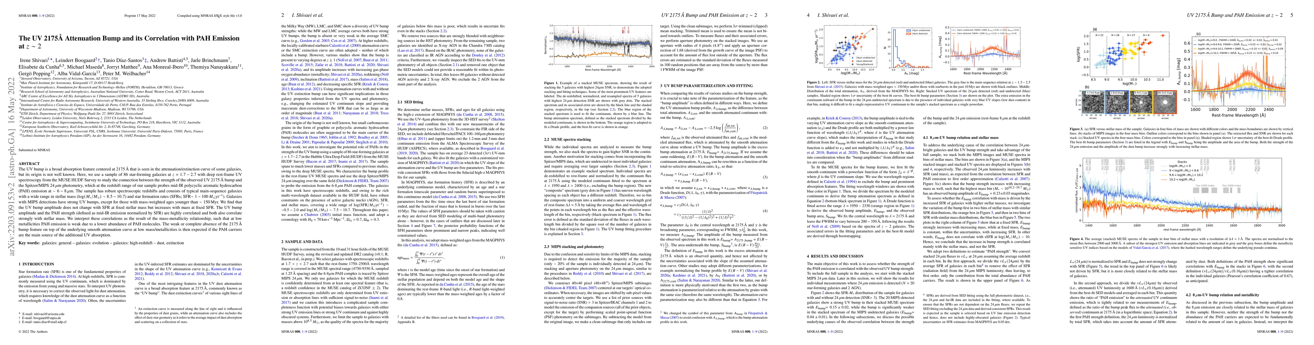 A study of 86 galaxies at z=1.7-2.7 found a strong correlation between UV bump amplitude and PAH emission, with both increasing with stellar mass. The results support the idea that PAH molecules are the main source of additional UV absorption in low-metallicity galaxies.