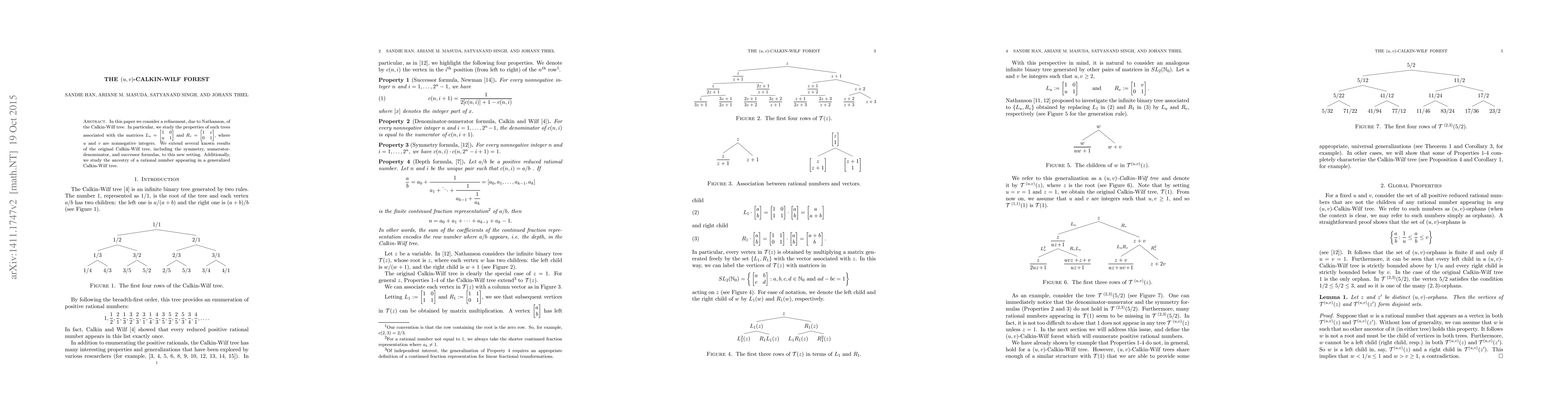 In this paper we consider a refinement, due to Nathanson, of the Calkin-Wilf tree. In particular, we study the properties of such trees associated with the matrices $L_u=\begin{bmatrix} 1 & 0 \\ u & 1\end{bmatrix}$ and $R_v=\begin{bmatrix} 1 & v \\ 0& 1\end{bmatrix}$, where $u$ and $v$ are nonnegative integers. We extend several known results of the original Calkin-Wilf tree, including the symmetry, numerator-denominator, and successor formulas, to this new setting. Additionally, we study the ancestry of a rational number appearing in a generalized Calkin-Wilf tree.