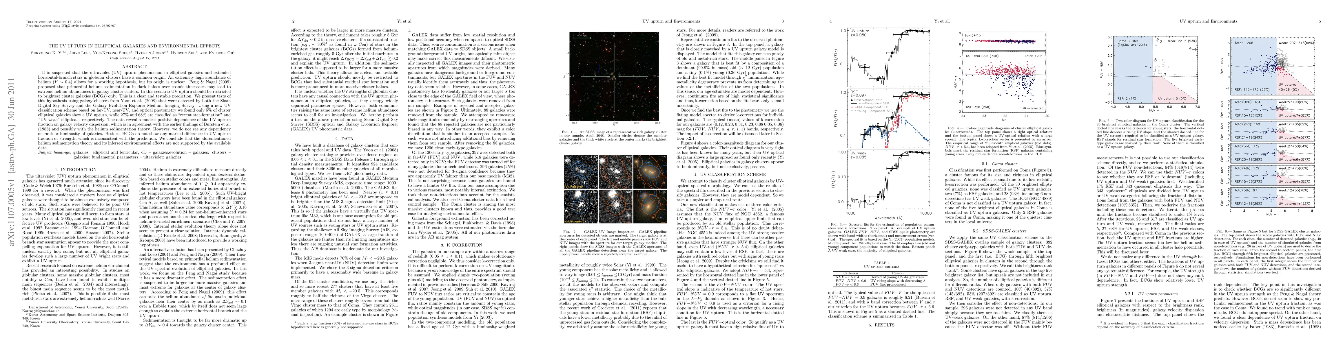 This study investigates the UV upturn phenomenon in elliptical galaxies and its potential link to environmental effects, particularly focusing on the hypothesis that extreme helium abundances from primordial sedimentation could cause the UV upturn. The findings show that only 5% of elliptical galaxies in galaxy clusters exhibit a UV upturn, contradicting the prediction that brightest cluster galaxies should be the most affected. The data do not support the helium sedimentation theory, as no significant dependency on galaxy rank or luminosity was observed.