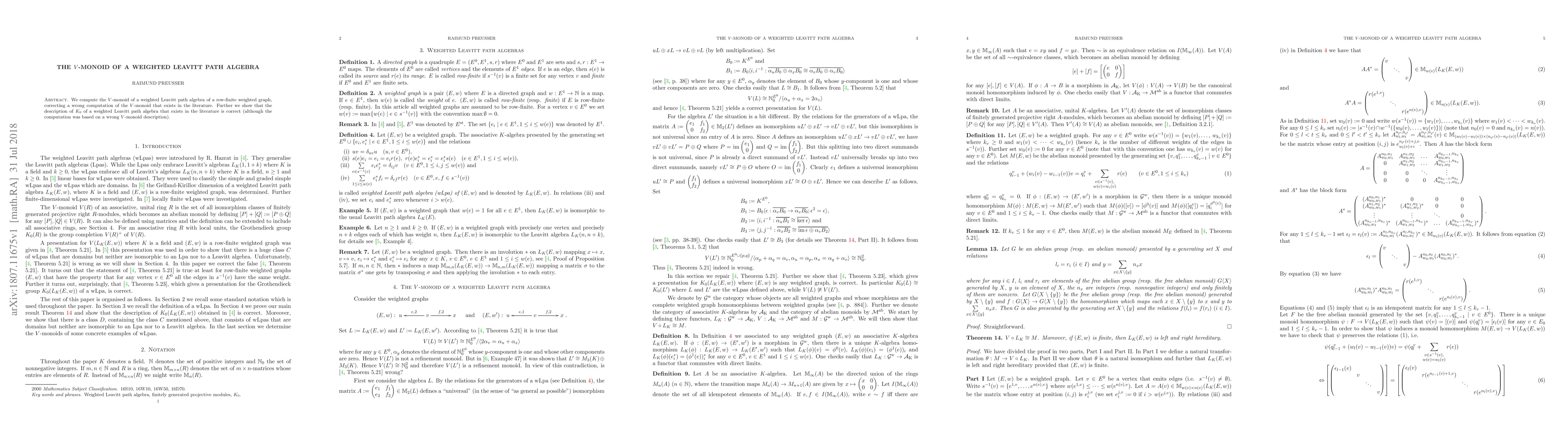 This paper corrects the computation of the $V$-monoid for weighted Leavitt path algebras of row-finite weighted graphs, while confirming the correctness of the $K_0$ description found in the literature despite its reliance on an incorrect $V$-monoid.