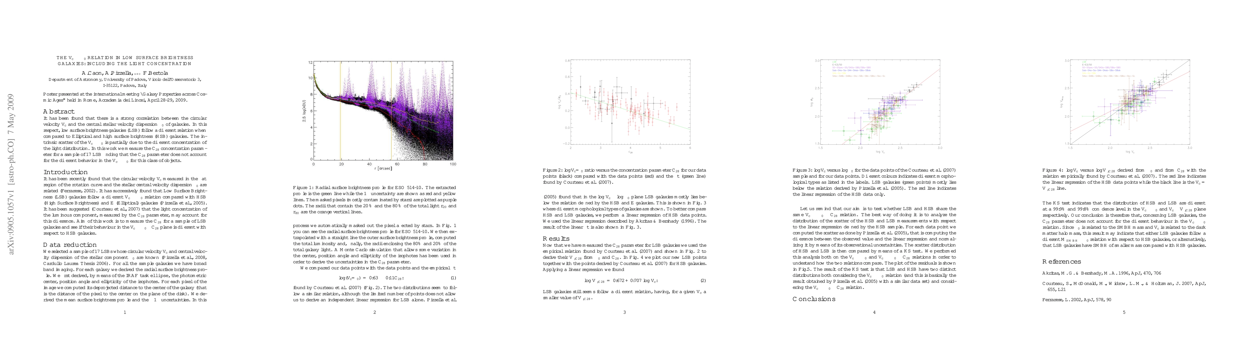 This paper investigates the V_c-σ_0 relation in low surface brightness galaxies (LSB), finding that they follow a different correlation compared to elliptical and high surface brightness galaxies. The study measures the C_28 concentration parameter for 17 LSB but concludes that light concentration does not explain the differing V_c-σ_0 behavior.