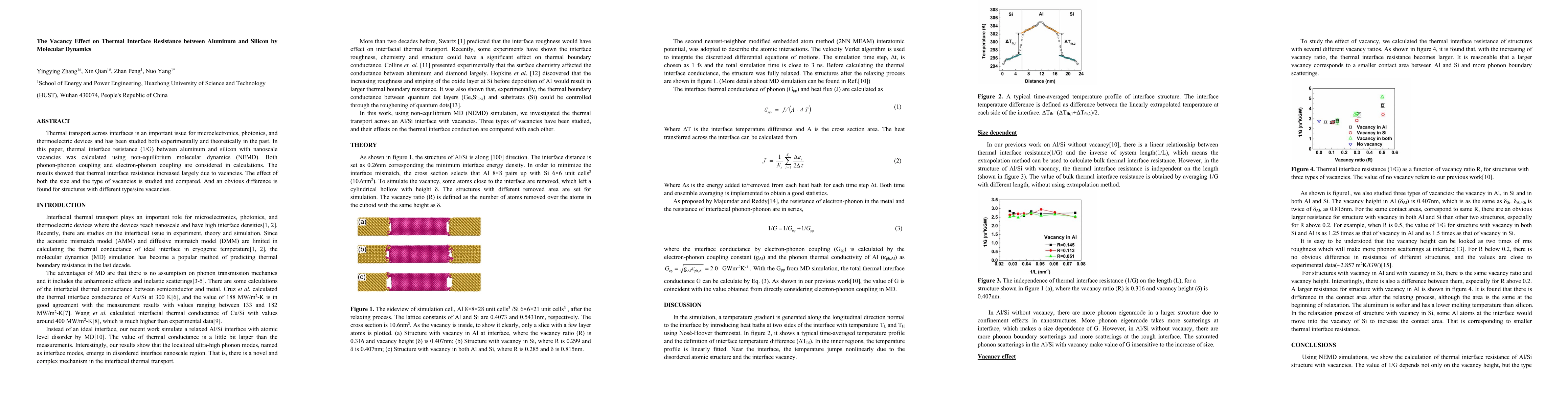 This paper investigates the impact of nanoscale vacancies on thermal interface resistance between aluminum and silicon using non-equilibrium molecular dynamics. The study finds that vacancies significantly increase thermal interface resistance, with varying effects depending on the size and type of vacancies.