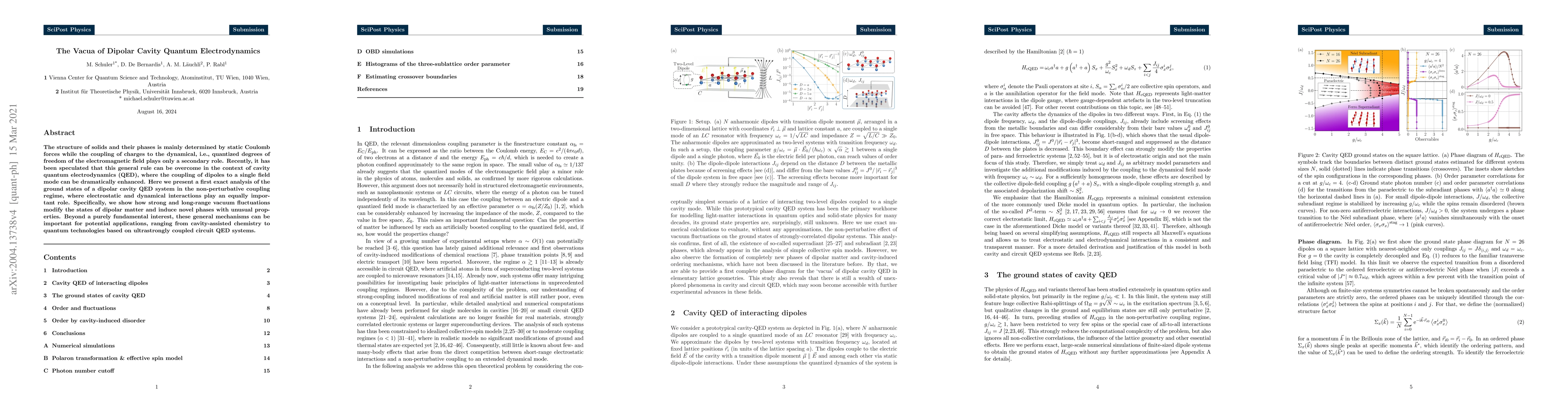 The structure of solids and their phases is mainly determined by static Coulomb forces while the coupling of charges to the dynamical, i.e., quantized degrees of freedom of the electromagnetic field plays only a secondary role. Recently, it has been speculated that this general rule can be overcome in the context of cavity quantum electrodynamics (QED), where the coupling of dipoles to a single field mode can be dramatically enhanced. Here we present a first exact analysis of the ground states of a dipolar cavity QED system in the non-perturbative coupling regime, where electrostatic and dynamical interactions play an equally important role. Specifically, we show how strong and long-range vacuum fluctuations modify the states of dipolar matter and induce novel phases with unusual properties. Beyond a purely fundamental interest, these general mechanisms can be important for potential applications, ranging from cavity-assisted chemistry to quantum technologies based on ultrastrongly coupled circuit QED systems.