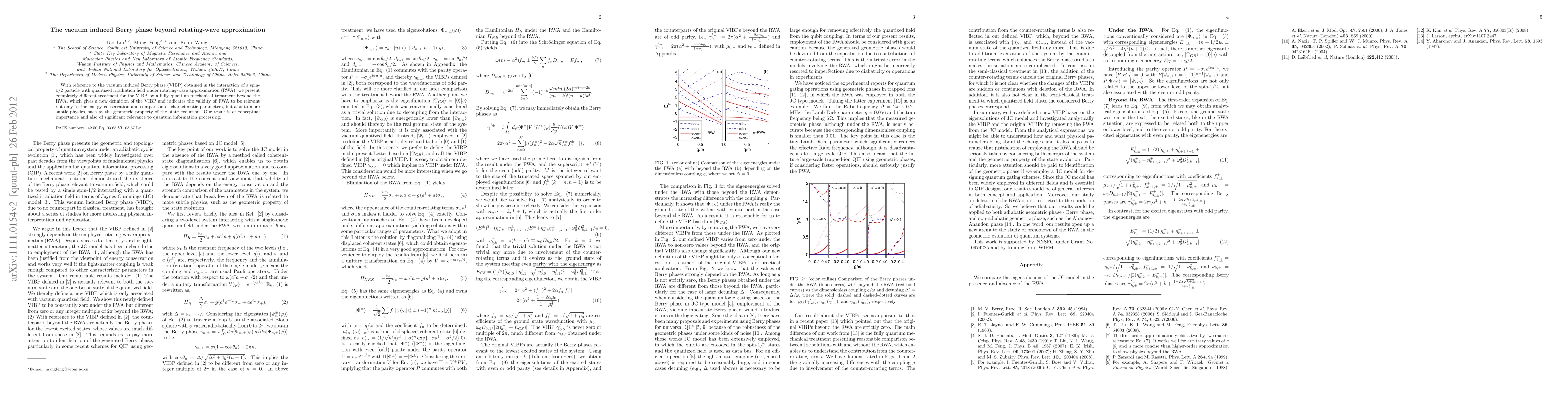 This paper presents a new treatment of the vacuum induced Berry phase (VIBP) beyond the rotating-wave approximation (RWA), offering a fully quantum mechanical approach that redefines VIBP and highlights the broader applicability of RWA beyond energy conservation and parameter comparison, emphasizing its role in geometric state evolution and quantum information processing.
