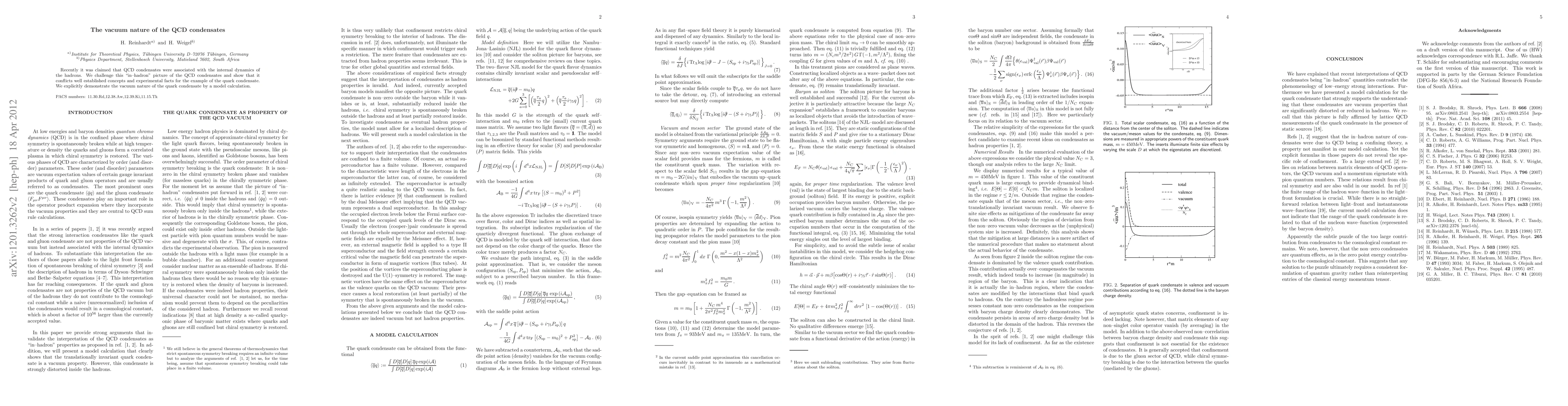 This paper disputes the notion that QCD condensates are tied to the internal dynamics of hadrons, arguing instead for their vacuum nature. The authors provide a model calculation to explicitly demonstrate the vacuum characteristics of the quark condensate, challenging established "in-hadron" interpretations.