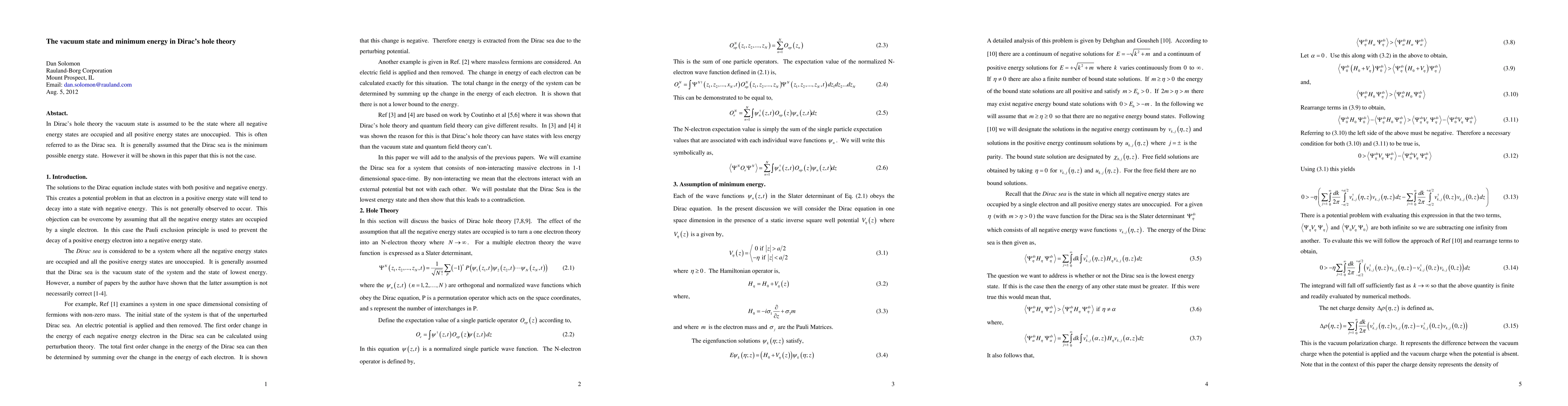 This paper challenges the assumption that the Dirac sea, where all negative energy states are occupied, represents the vacuum state's minimum energy. It demonstrates that the true vacuum state has a lower energy configuration than previously thought.