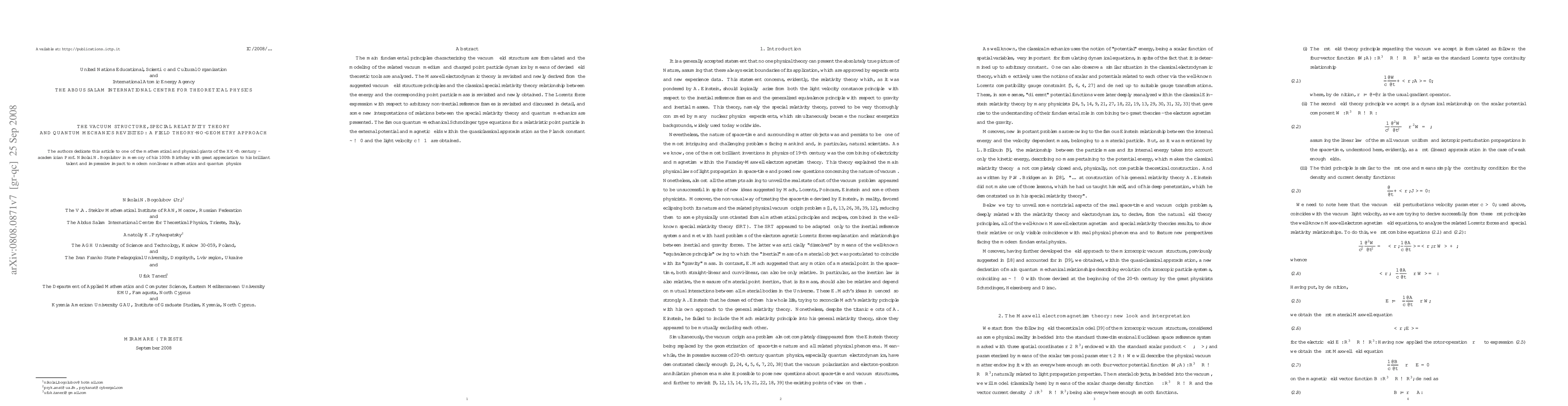 This paper revisits the vacuum field structure and derives Maxwell electrodynamics and special relativity from new field theoretic principles. It also explores the Lorentz force in non-inertial frames and proposes new interpretations linking special relativity to quantum mechanics.