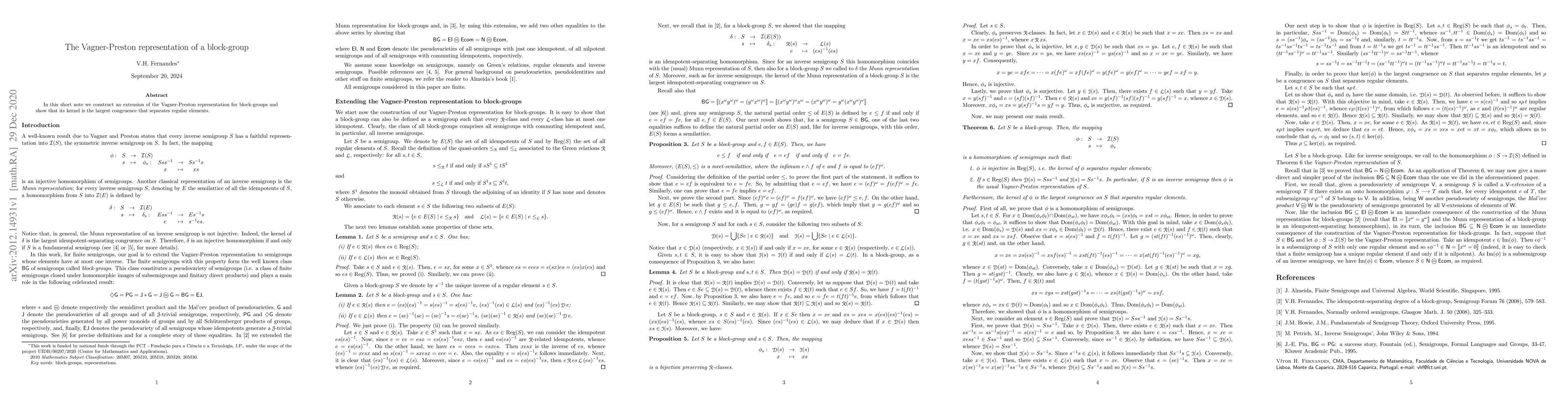 In this short note we construct an extension of the Vagner-Preston representation for block-groups and show that its kernel is the largest congruence that separates regular elements.