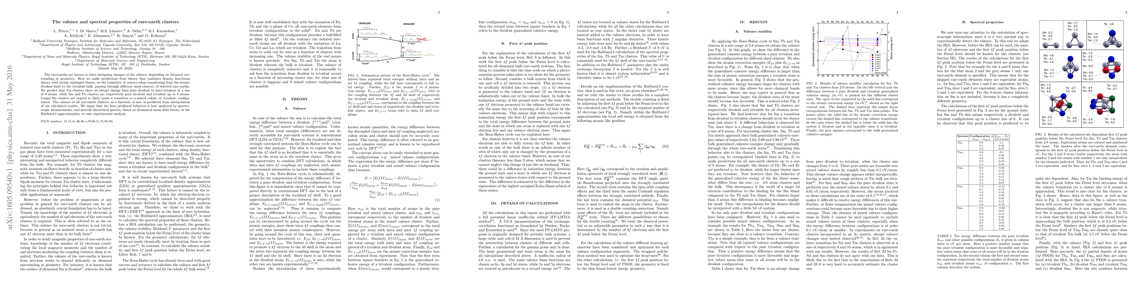 This paper uses density functional theory combined with atomic multiplet-theory to predict the valence transitions in rare-earth clusters, showing that Tm clusters abruptly change from divalent to trivalent at 6 atoms, while Sm and Tb clusters remain divalent and trivalent up to 8 atoms, respectively. The study also suggests spectroscopic measurements to analyze these transitions and provides theoretical spectra for experimental validation.