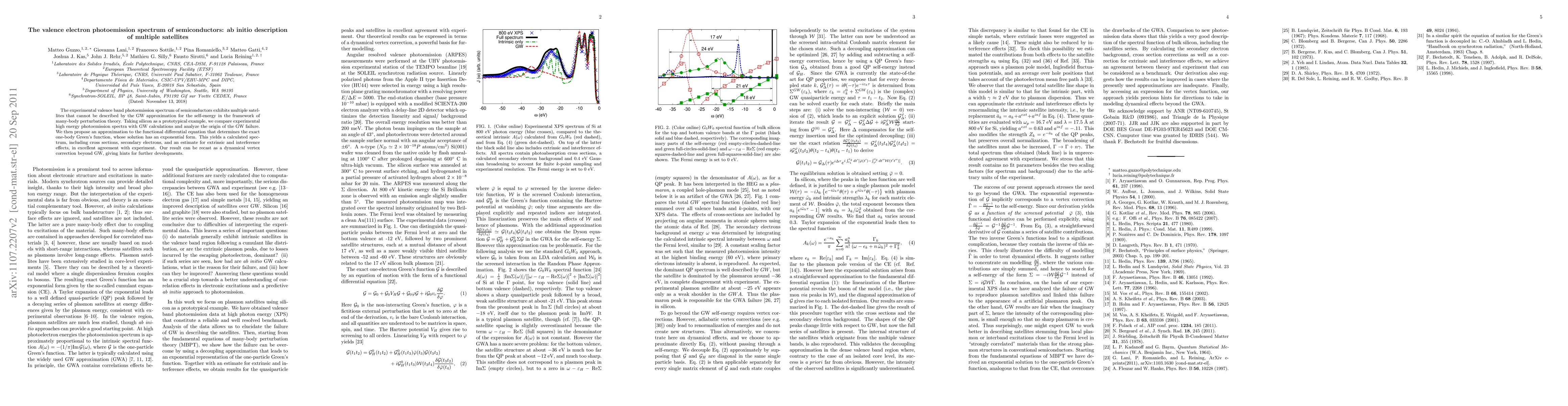 This paper investigates the discrepancies between experimental valence band photoemission spectra of semiconductors and GW approximation calculations, focusing on silicon. It proposes a new approximation to the functional differential equation for the one-body Green's function, yielding a spectrum that accurately matches experimental data, suggesting a dynamical vertex correction beyond GW.