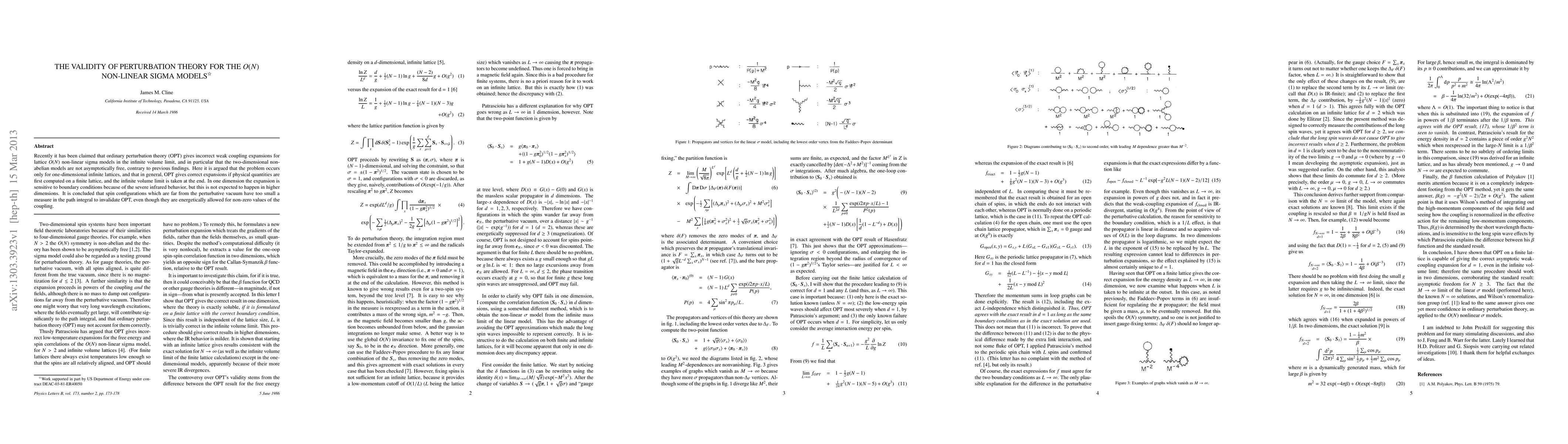 Ordinary perturbation theory is valid for lattice O(N) non-linear sigma models in higher dimensions, but can be problematic in one dimension due to infrared behavior; it should be used with finite lattices before taking the infinite volume limit.