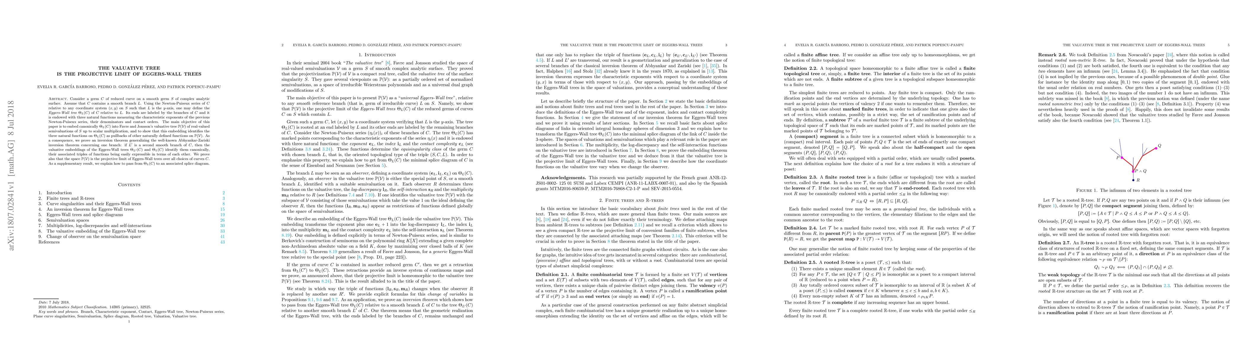 A research paper shows that Eggers-Wall trees can be embedded into a valuative tree representing real-valued semivaluations of complex analytic surfaces, leading to a projective limit relationship between these trees.