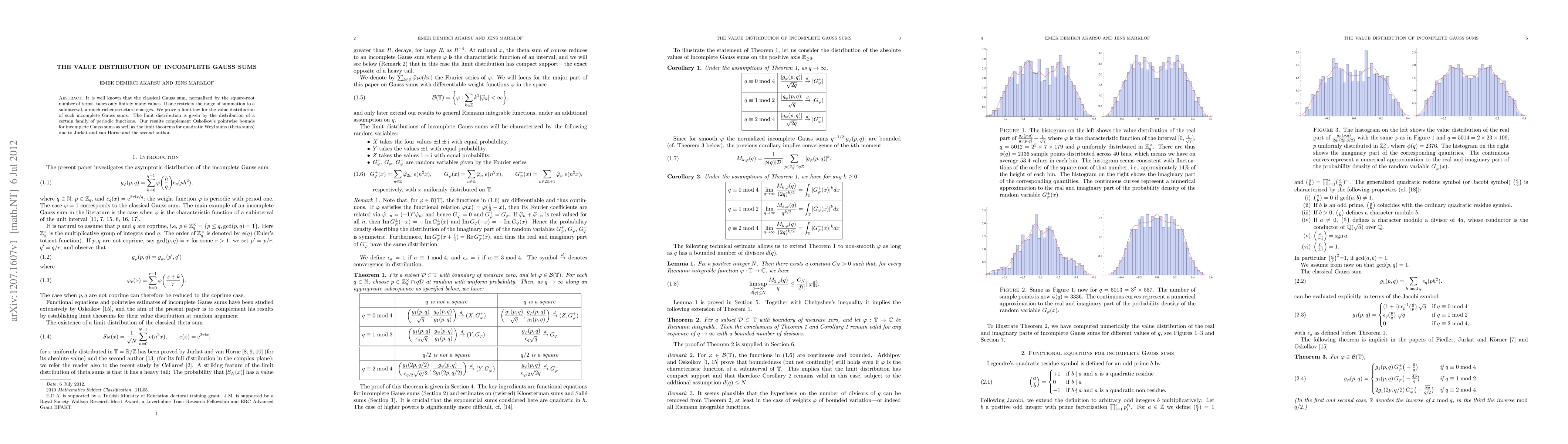This paper proves a limit law for the value distribution of incomplete Gauss sums, showing that their distribution converges to that of a family of periodic functions. The findings complement existing bounds and limit theorems for related sums, enhancing the understanding of their behavior.