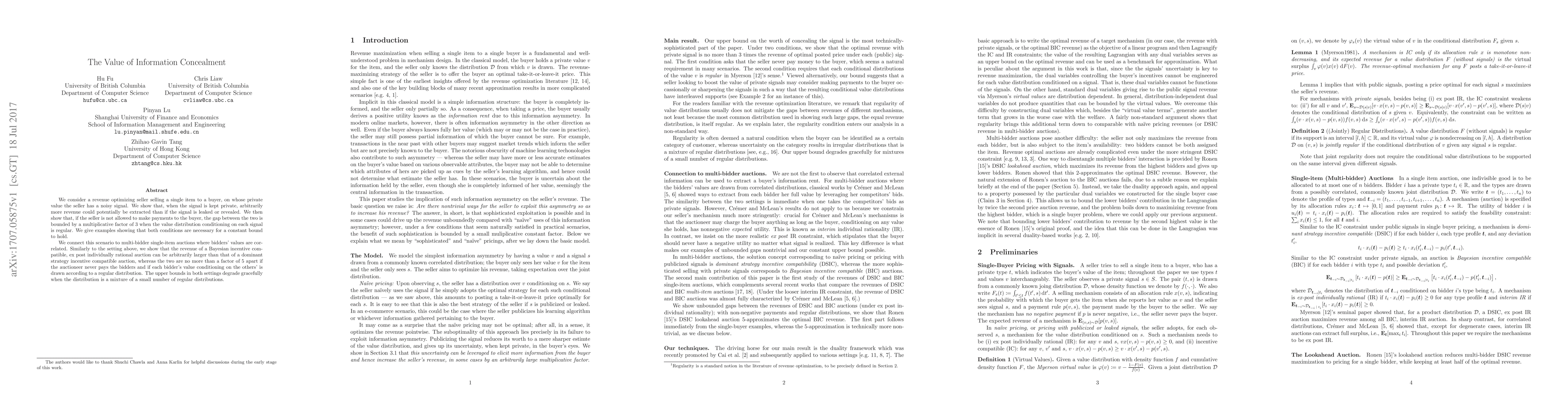 We consider a revenue optimizing seller selling a single item to a buyer, on whose private value the seller has a noisy signal. We show that, when the signal is kept private, arbitrarily more revenue could potentially be extracted than if the signal is leaked or revealed. We then show that, if the seller is not allowed to make payments to the buyer, the gap between the two is bounded by a multiplicative factor of 3, if the value distribution conditioning on each signal is regular. We give examples showing that both conditions are necessary for a constant bound to hold. We connect this scenario to multi-bidder single-item auctions where bidders' values are correlated. Similarly to the setting above, we show that the revenue of a Bayesian incentive compatible, ex post individually rational auction can be arbitrarily larger than that of a dominant strategy incentive compatible auction, whereas the two are no more than a factor of 5 apart if the auctioneer never pays the bidders and if each bidder's value conditioning on the others' is drawn according to a regular distribution. The upper bounds in both settings degrade gracefully when the distribution is a mixture of a small number of regular distributions.