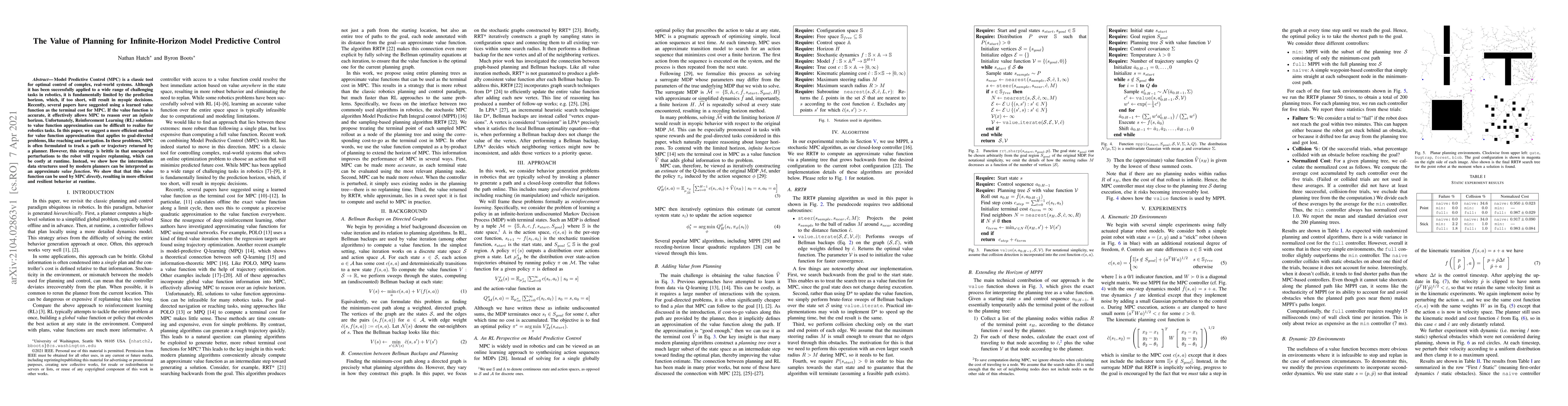 This paper proposes a method to enhance Model Predictive Control (MPC) by using intermediate data from planners as an approximate value function, allowing MPC to effectively reason over an infinite horizon without the need for complex Reinforcement Learning, thus improving efficiency and resilience in goal-directed tasks.