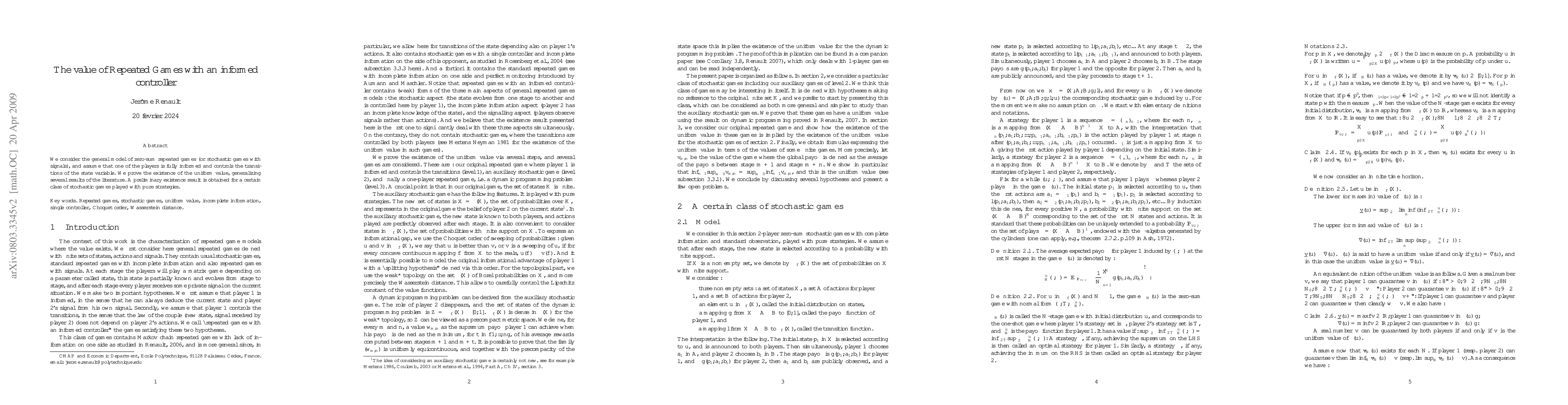 This paper proves the existence of a uniform value for zero-sum repeated games where one player is fully informed and controls the state transitions. It generalizes existing literature and also provides preliminary results for a class of stochastic games with pure strategies.