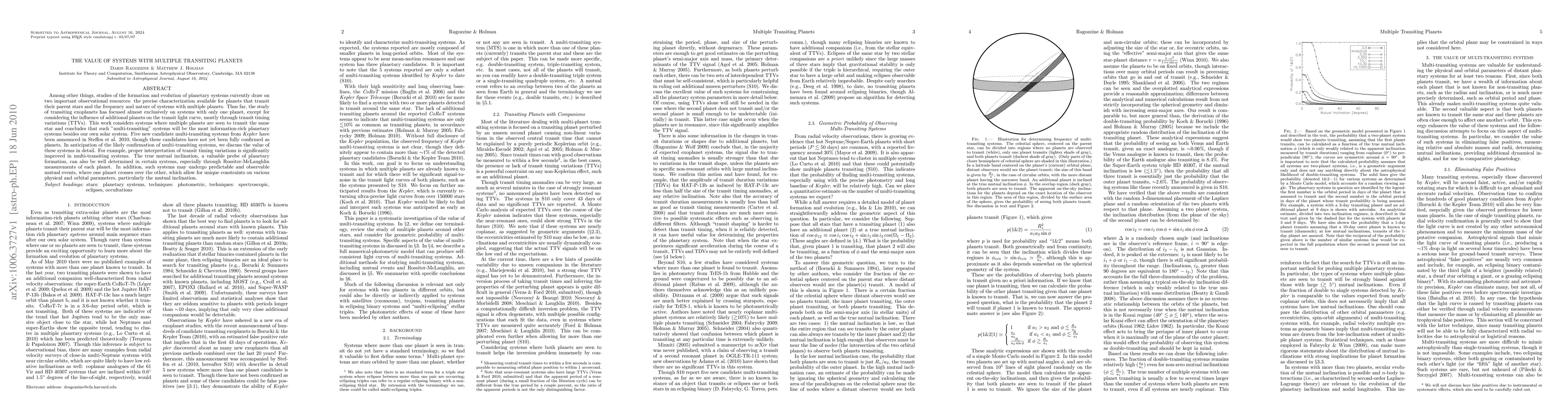 This paper highlights the significant value of multi-transiting planetary systems, emphasizing that they provide rich information for studying planetary formation and evolution. These systems enhance the interpretation of transit timing variations and allow for precise measurements of mutual inclinations and unique mutual events.