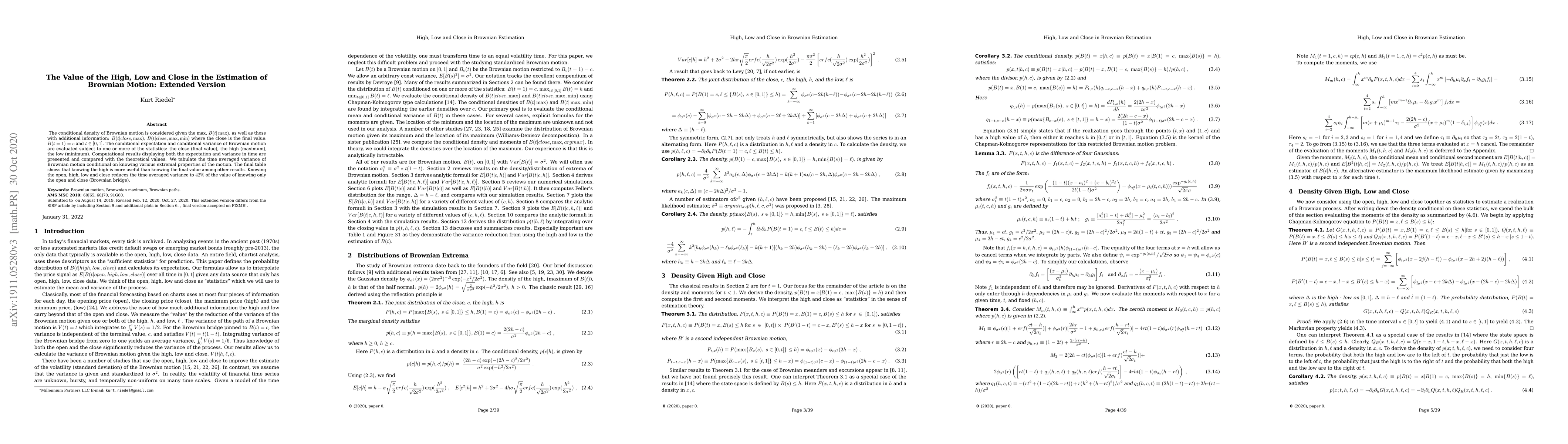 The conditional density of Brownian motion is considered given the max, B(t|\max), as well as those with additional information: B(t|close, max), B(t|close, max, min) and B(t|max, min) where the close is the final value: B(t=1)=c and t in [0,1]. The conditional expectation and conditional variance of Brownian motion are evaluated subject to one or more of the the close (final value), the high (maximum), the low (minimum). Computational results displaying both the expectation and variance in time are presented and compared with the theoretical values. We tabulate the time averaged variance of Brownian motion conditional on knowing various extremal properties of the motion. The final table shows that knowing the high is more useful than knowing the final value among other results. Knowing the open, high, low and close reduces the time averaged variance to 42% of the value of knowing only the open and close (Brownian bridge).