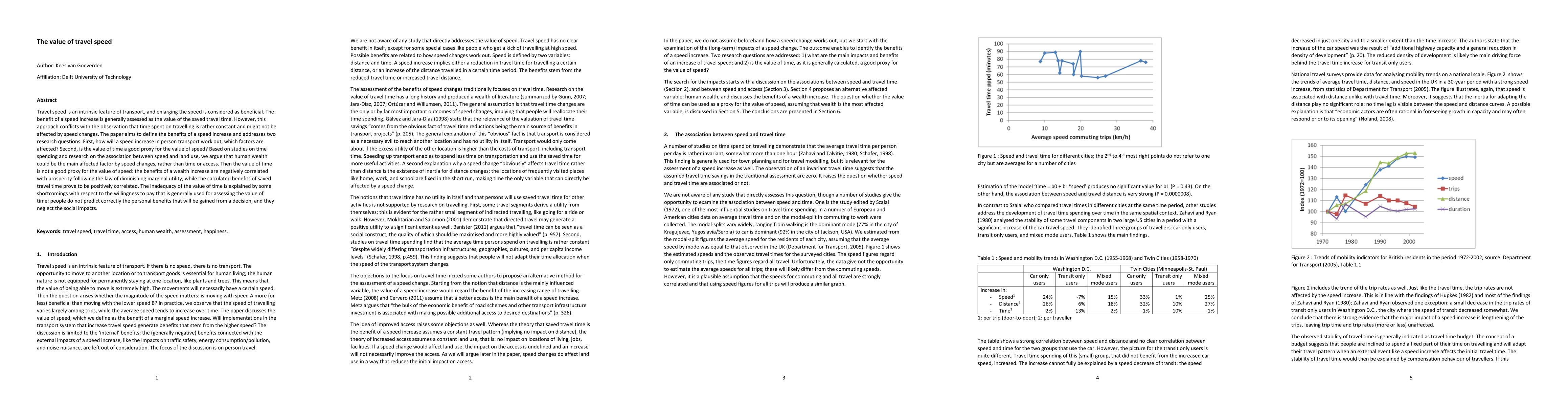 A study found that increasing travel speed may not directly benefit people's time, but rather their wealth and prosperity, as the value of saved time does not accurately reflect the benefits of increased speed. The paper argues that a better measure of speed's value is needed, one that accounts for individual and social benefits beyond just time savings.
