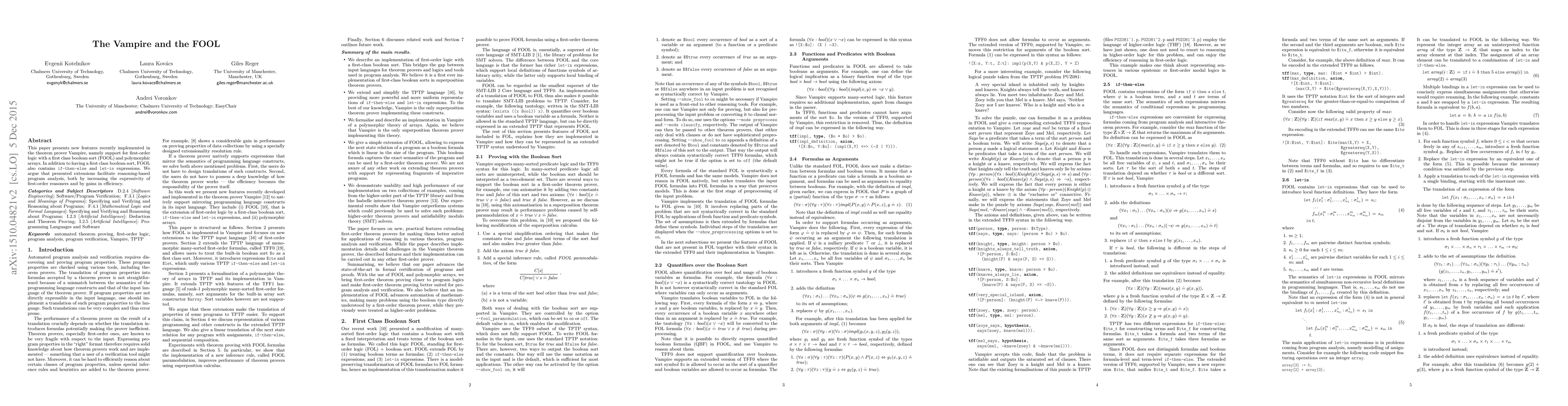 This paper introduces new features in the Vampire theorem prover, including support for first-order logic with a first-class boolean sort (FOOL) and polymorphic arrays, enhancing both expressivity and efficiency in reasoning-based program analysis.