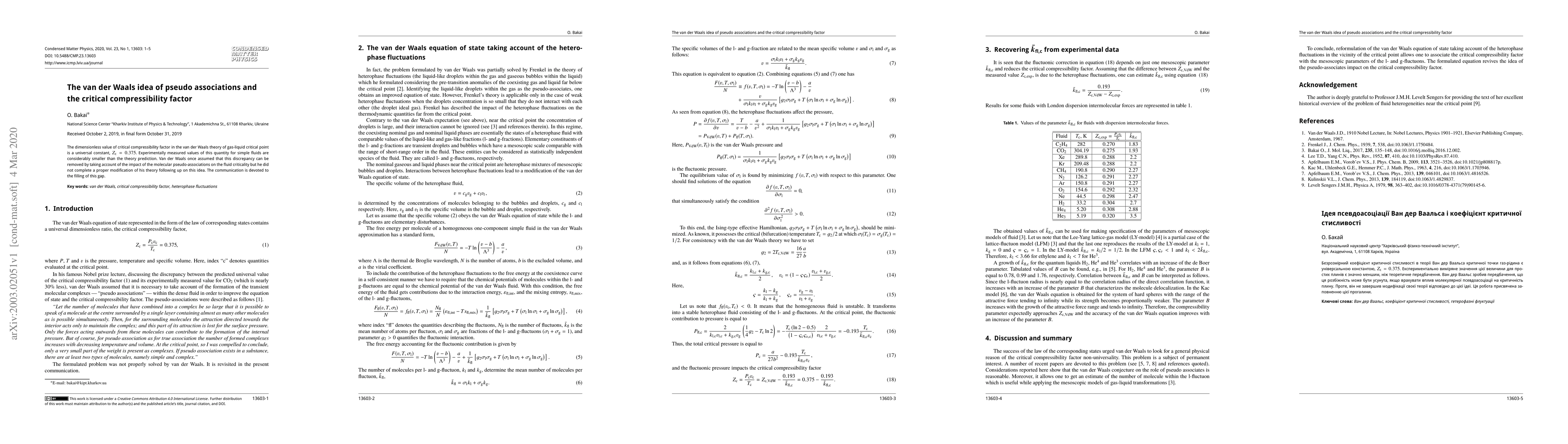 This paper revisits van der Waals' idea of pseudo-associations to address the discrepancy between theoretical and experimental values of the critical compressibility factor, $Z_\text{c} = 0.375$, and proposes a modified theory to reconcile these differences.