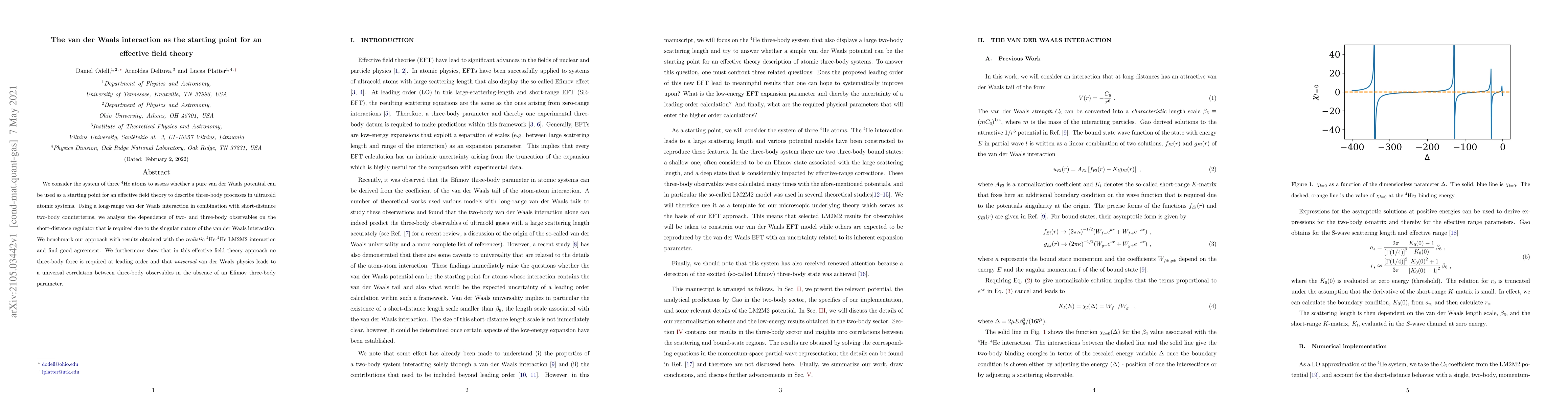 This paper explores the use of van der Waals interactions as a foundation for an effective field theory to describe three-body processes in ultracold helium systems. It demonstrates that good agreement is found with realistic interactions and that no three-body force is needed at leading order, highlighting universal van der Waals physics and correlations among three-body observables.