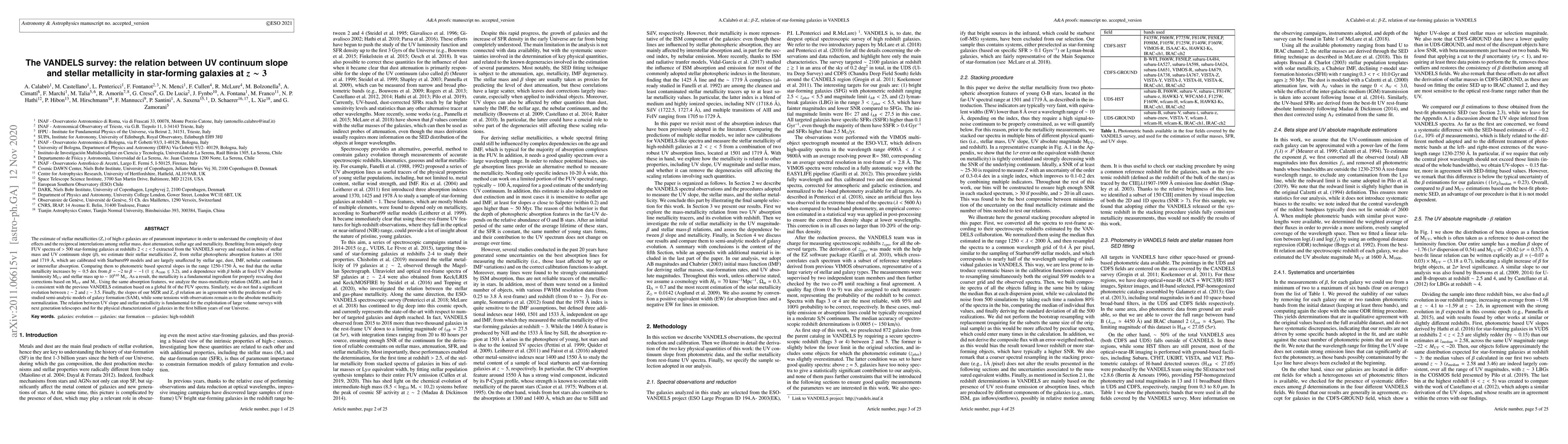 The VANDELS survey investigates the relationship between UV continuum slope and stellar metallicity in star-forming galaxies at redshifts 2<z<5. The study finds that stellar metallicity increases with a steeper UV slope, and this relationship holds across various stellar masses and UV luminosities, aiding in the accurate rescaling of dust corrections.