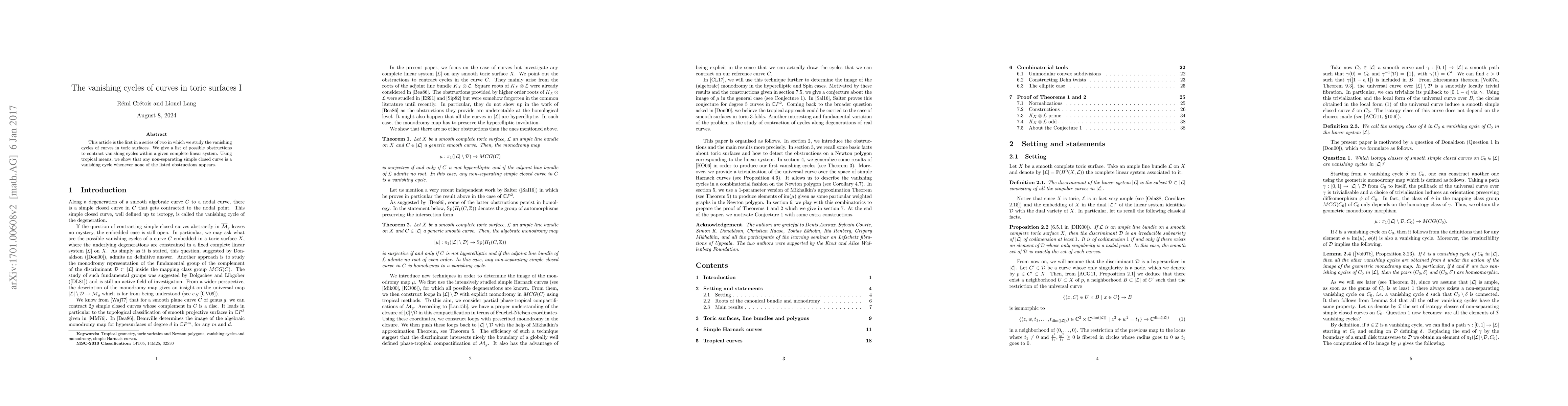 This paper investigates vanishing cycles of curves in toric surfaces, identifying potential obstructions to contracting these cycles within a complete linear system. It demonstrates, via tropical methods, that any non-separating simple closed curve becomes a vanishing cycle when no obstructions are present.