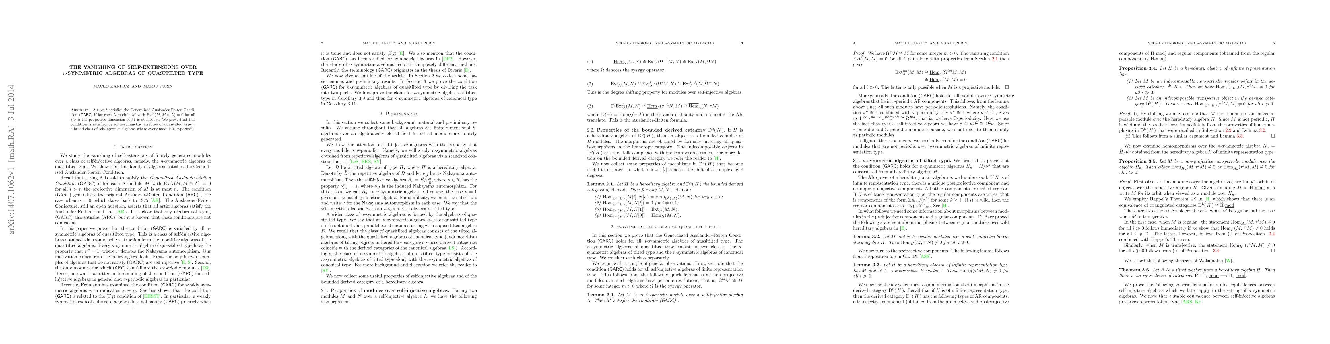 A ring R satisfies the Generalized Auslander-Reiten Condition if any R-module M with no self-extensions in degrees higher than m must have projective dimension at most m. We prove that this condition is satisfied by all n-symmetric algebras of quasitilted type- a broad class of self-injective algebras where every module is periodic under the Nakayama automorphism.