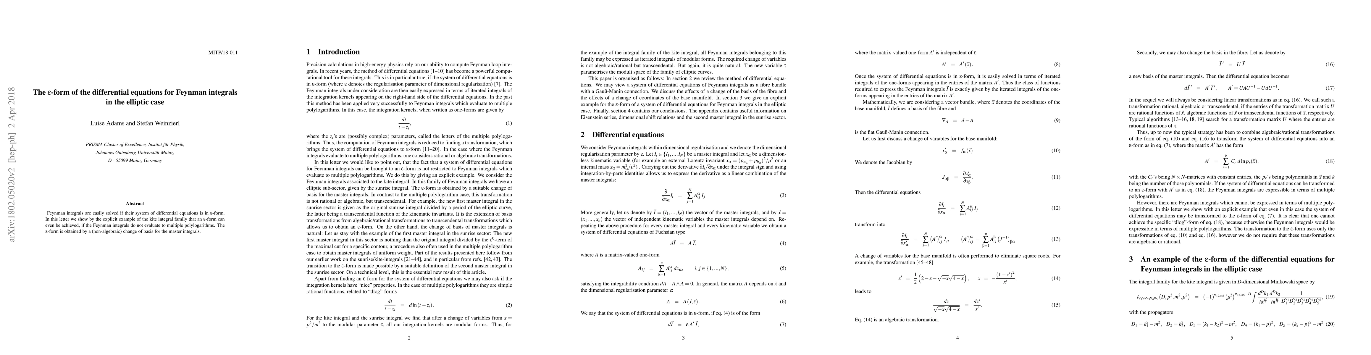 This paper demonstrates how to achieve the $\varepsilon$-form for differential equations governing Feynman integrals, even when the integrals do not simplify to multiple polylogarithms. The $\varepsilon$-form is attained through a non-algebraic change of basis for the master integrals, illustrated with the kite integral family.