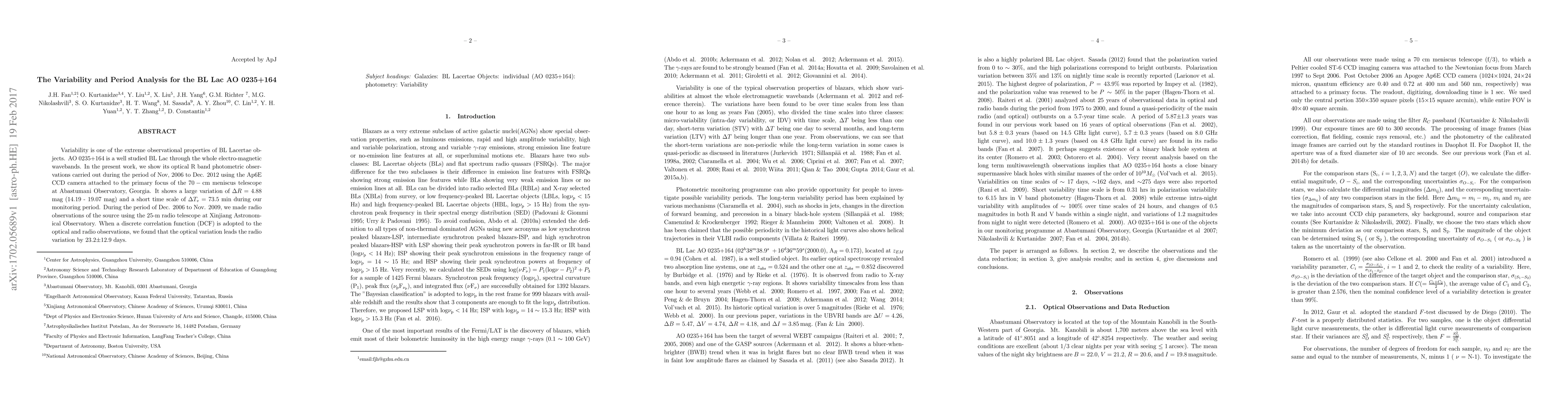A study of BL Lacertae object AO 0235+164 found large variability in optical light with a 73.5-minute time scale, leading to correlated radio variations.