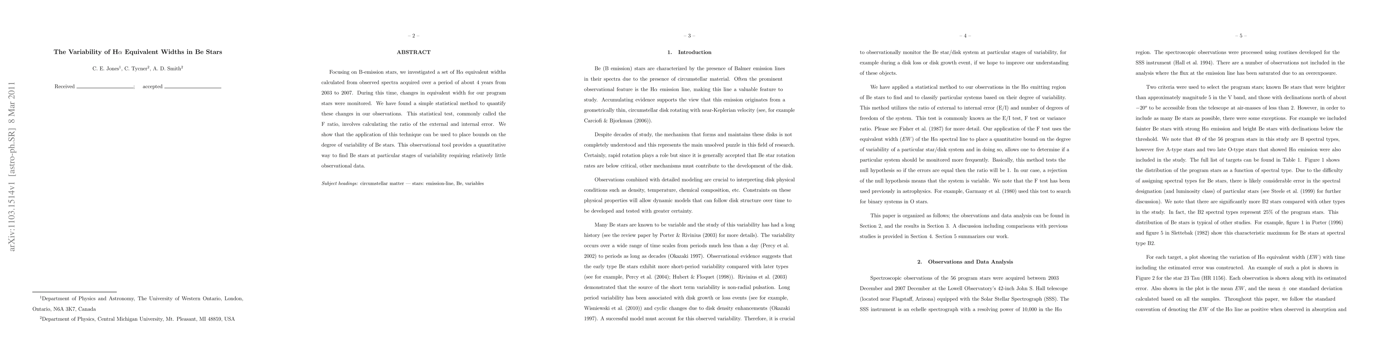 Focusing on B-emission stars, we investigated a set of H$\alpha$ equivalent widths calculated from observed spectra acquired over a period of about 4 years from 2003 to 2007. During this time, changes in equivalent width for our program stars were monitored. We have found a simple statistical method to quantify these changes in our observations. This statistical test, commonly called the F ratio, involves calculating the ratio of the external and internal error. We show that the application of this technique can be used to place bounds on the degree of variability of Be stars. This observational tool provides a quantitative way to find Be stars at particular stages of variability requiring relatively little observational data.