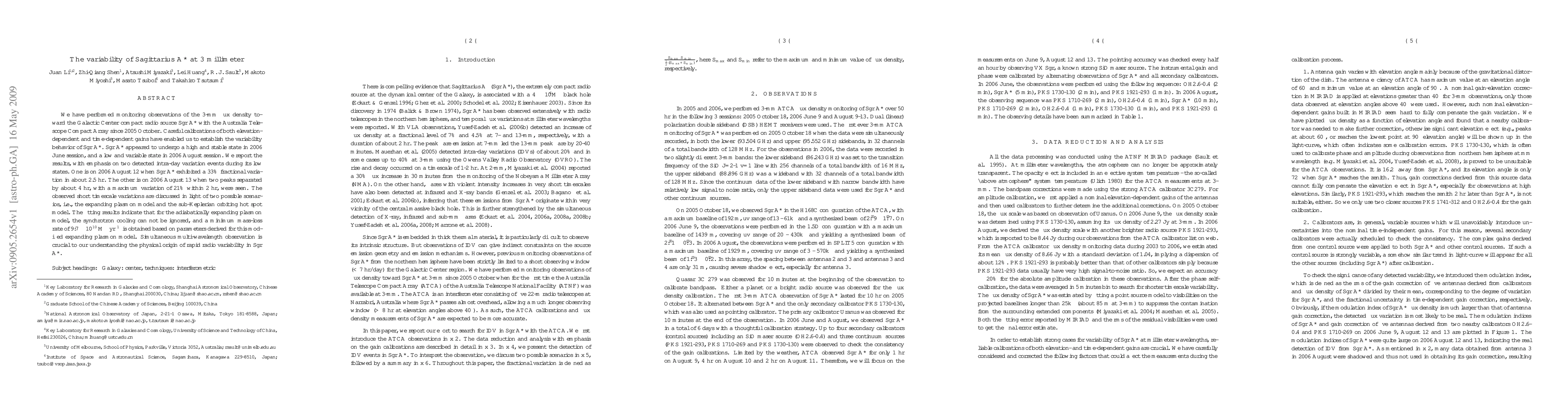 The research paper reports on the variability of Sagittarius A* at 3 millimeter wavelengths, detecting two intra-day variation events with significant fractional variations, which could be explained by either an expanding plasmon model or a sub-Keplerian orbiting hot spot model.