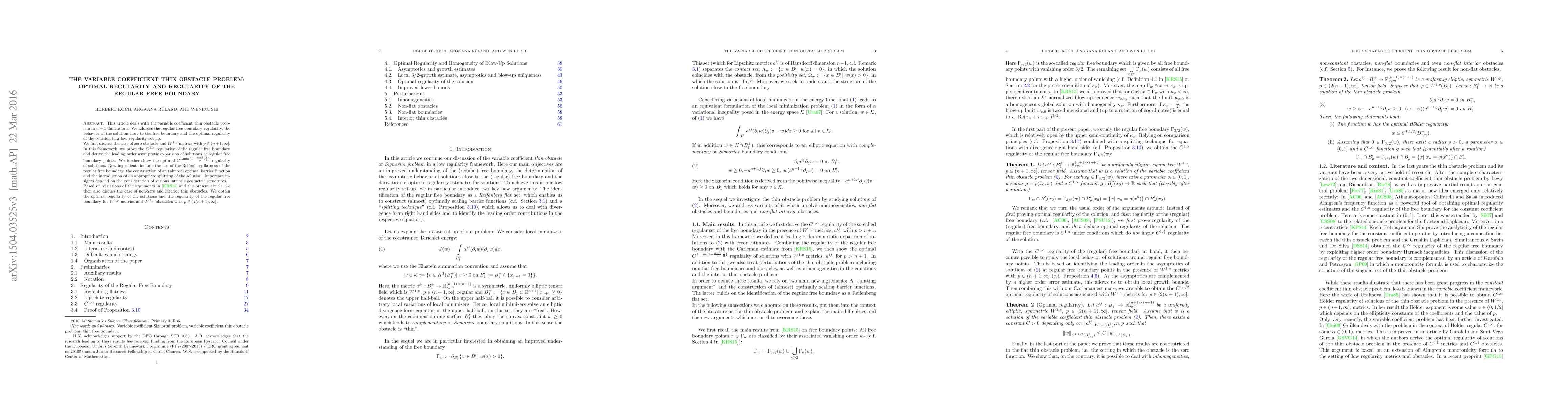 The work presents novel approaches and refined estimates for the thin obstacle problem, particularly in the context of variable coefficient thin obstacles and low regularity settings.