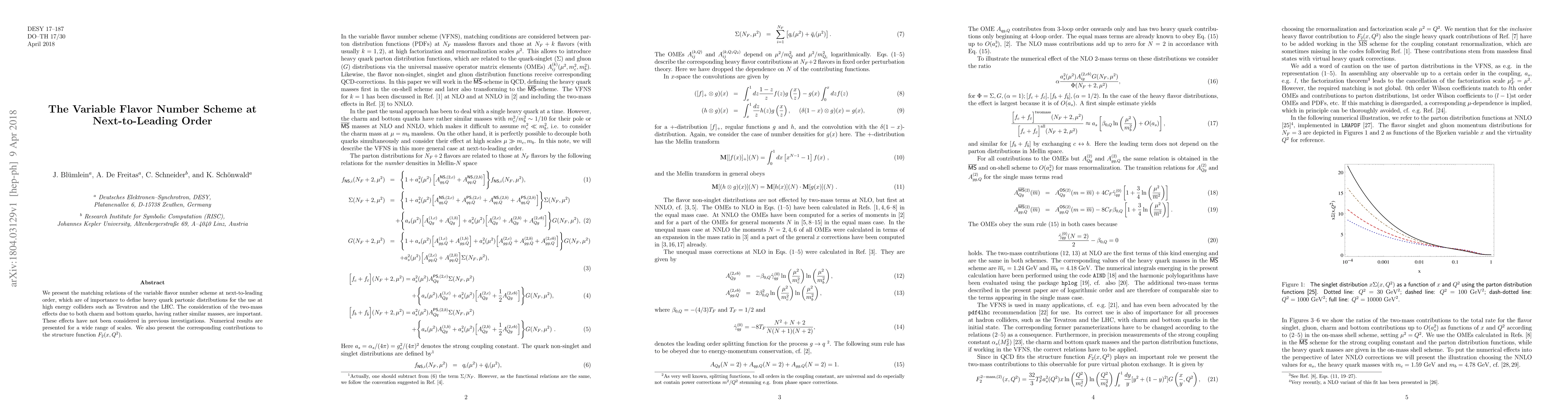 We present the matching relations of the variable flavor number scheme at next-to-leading order, which are of importance to define heavy quark partonic distributions for the use at high energy colliders such as Tevatron and the LHC. The consideration of the two-mass effects due to both charm and bottom quarks, having rather similar masses, are important. These effects have not been considered in previous investigations. Numerical results are presented for a wide range of scales. We also present the corresponding contributions to the structure function $F_2(x,Q^2)$.