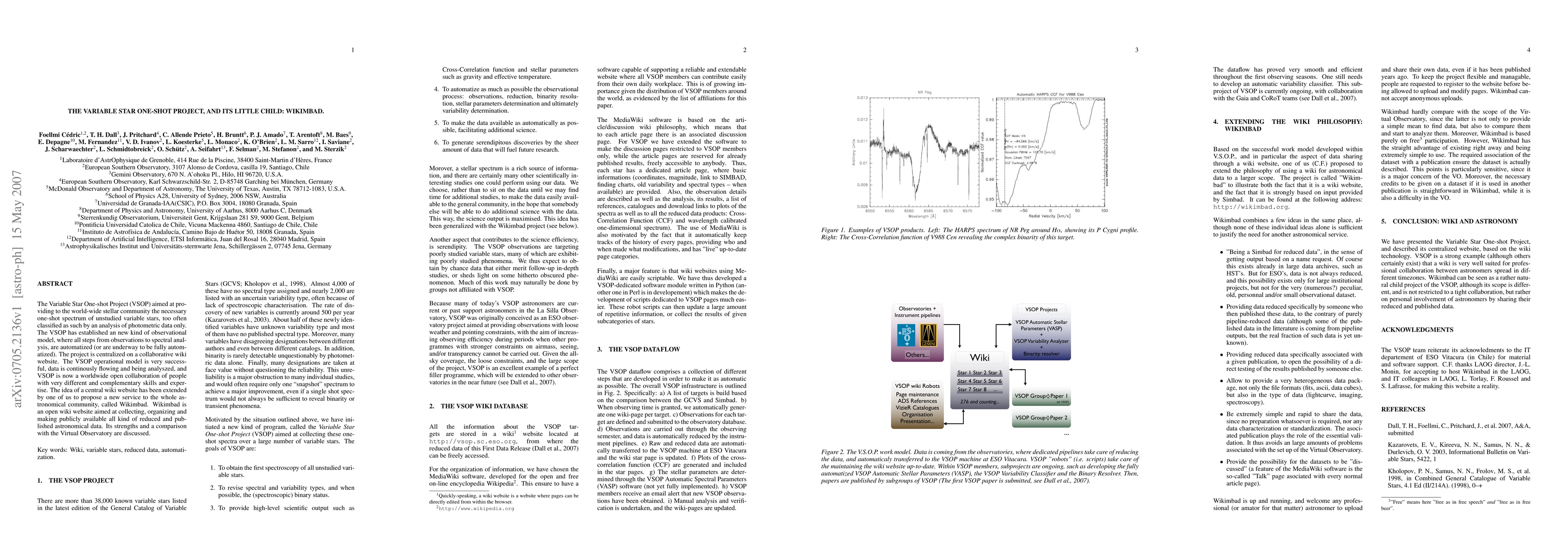 The Variable Star One-shot Project (VSOP) automates the process of obtaining and analyzing spectra for unstudied variable stars, fostering a global collaborative effort via a wiki platform. Wikimbad, an extension of VSOP, aims to aggregate and organize all published astronomical data, contrasting with the Virtual Observatory.